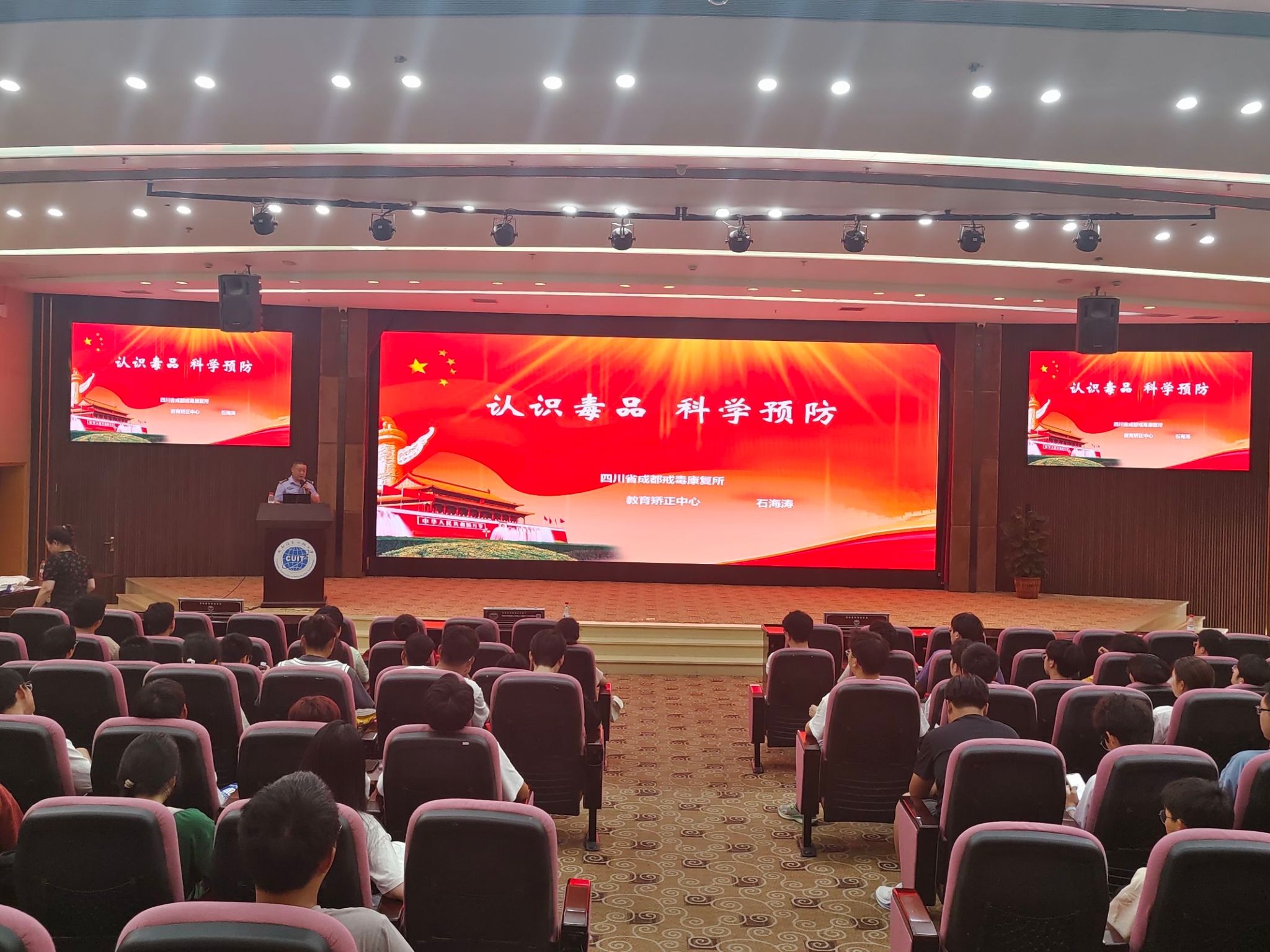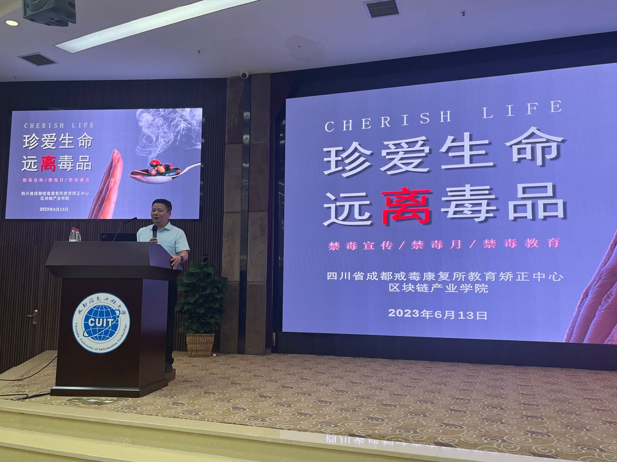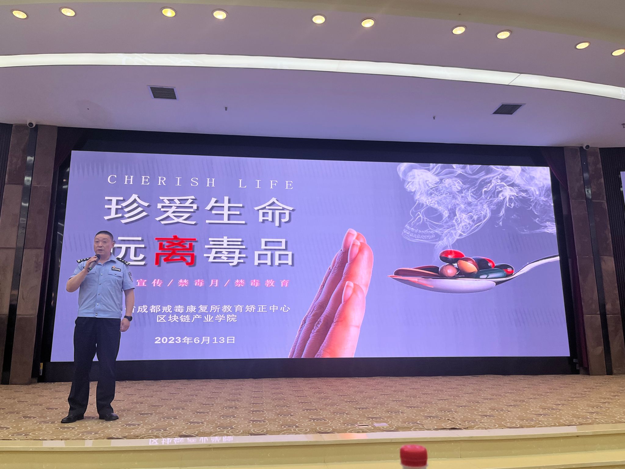 今年的6月26日为第36个国际禁毒日,围绕“健康人生,绿色无毒”的宣传主题,为了提升老员工识毒、拒毒、防毒的能力,区块链产业公司党委开展了全民禁毒月系列活动。6月13日下午,公司党委邀请了四川省成都戒毒康复所教育矫正中心石海涛警长为学院员工进行普法宣传教育讲座。林细俤书记主持并作了发言。石海涛警长通过鲜活的案例向同学们讲解了毒品常识及预防措施、涉毒违法犯罪的法律处罚等知识。