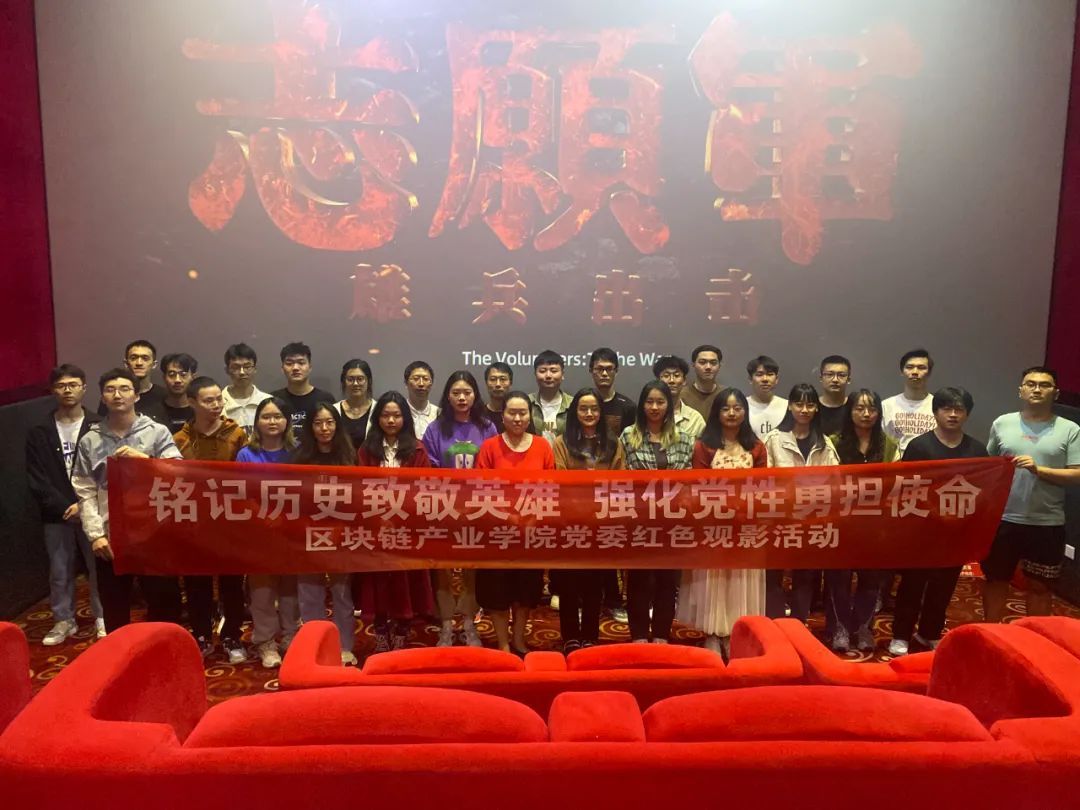 10月8日,区块链产业公司党委组织师生党员共同观看爱国主义教育电影《志愿军:雄兵出击》,纪念抗美援朝战争胜利70周年,传承弘扬伟大的抗美援朝精神。