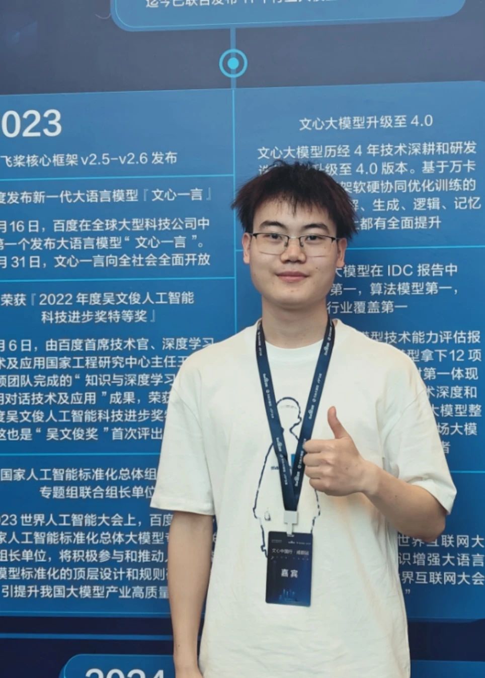 工作方面,连续两年担任CUIT百度飞桨领航团团长以及ASYNC人工智能方向的项目负责人,经常与学习上有困难的同学交流,带动整个实验室的伙伴一起学习,营造一个良好的学习氛围,树立良好学风。由于AI方向是2021年新开的专业,所以实验室里面没有相关的学长学姐,一切都要自己动手实践操作,因此想要真正地做好一个合格的AI负责人,就必须比别人花费更多的时间以及付出更多的努力,在这两年以来,ASYNC成功举办了很多AI活动,像图像分类、自然语言处理等比赛,因此他获得了同学、老师、学校的高度认可,并于2023 学年荣获“paddlepaddle优秀领航团团长”称号。
