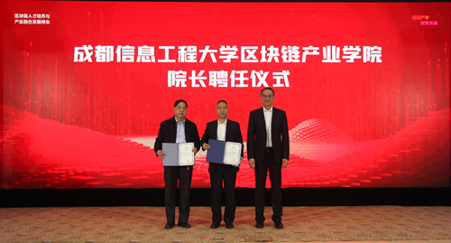 会上,四川省委教育工委书记、教育厅党组书记、厅长李江为“四川省人工智能产教融合创新基地”揭牌。四川省经济和信息化厅副厅长皮亦鸣、中关村区块链产业联盟创始人元道为“区块链产业学院”揭牌。公司党委书记周激流为清华大学朱岩教授颁发“区块链产业学院”学术经理聘书,学校董事长余敏明为世纪互联高级副总裁刘丰颁发“区块链产业学院”产业经理聘书,为武志学博士颁发“区块链产业学院”副经理聘书。中国工商银行成都分行副行长何逸、学校副董事长范广洲为“区块链金融研究中心”揭牌。