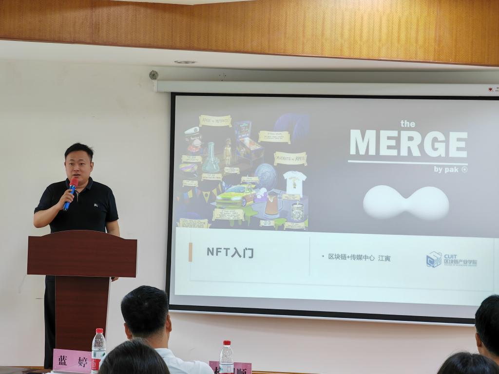 首先,理事会秘书长阳明山老师对本次会议作出了致辞。致辞中,他概括了404社区的主要工作,对404社区的未来长足发展作出了展望,并鼓励全体成员快速融入社团,积极主动参加到接下来的社团工作中。接下来,在区块链产业学院副书记兼区块链+文化传媒中心副主任姜宇忠老师的主持下,404社区全体成员进行了简单的自我介绍。之后,区块链+文化传媒中心副主任蓝婷老向到场的全体领导和404社区成员介绍了区块链+文化传媒中心并对404社团的工作进行了相应的部署,并表达了对全体成员的认可和期望。随后,区块链+文化传媒中心副主任江寅老师为全体成员分享了NFT的现状,寄希望于全体404社区成员在未来的社区工作中努力奋进,实现404社区大家庭的共同目标。最后,全体参会成员合影留念。