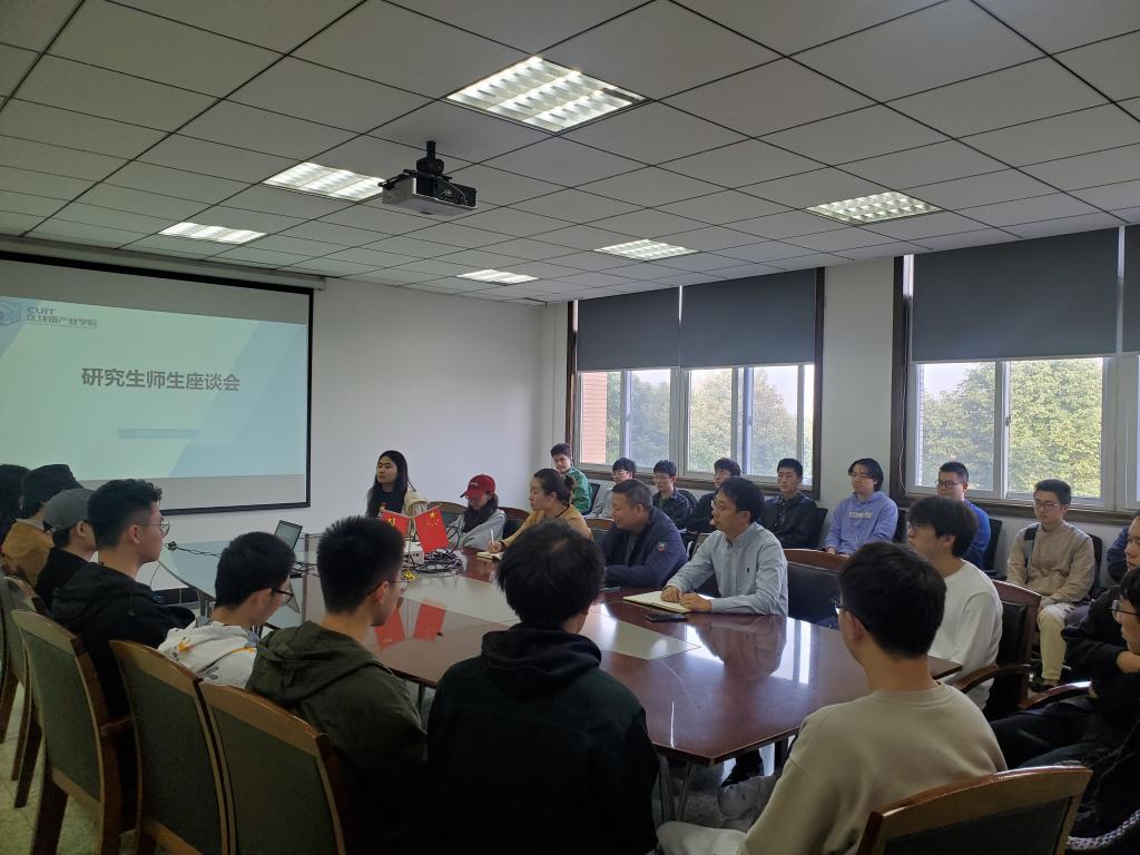 2022年11月1日中午,区块链产业学院召集2021、2022级全体研究生在第三会议室召开研究生师生座谈会,公司党总支书记林细俤、副书记姜宇忠、员工事务中心主任兼研究生辅导员徐同参加了会议。