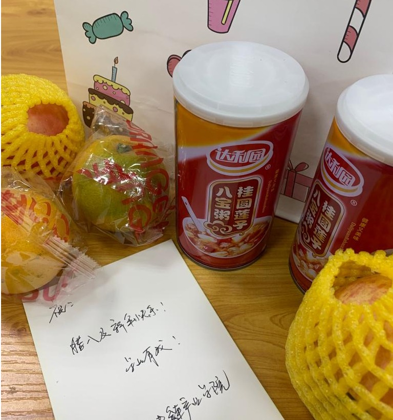 相信同学们在寒冬中收到老师的节日祝福与亲切问候以及学院准备的礼物,在寒冬腊月也倍感温暖。最后,也祝愿每个家庭都能在腊八健康幸福!