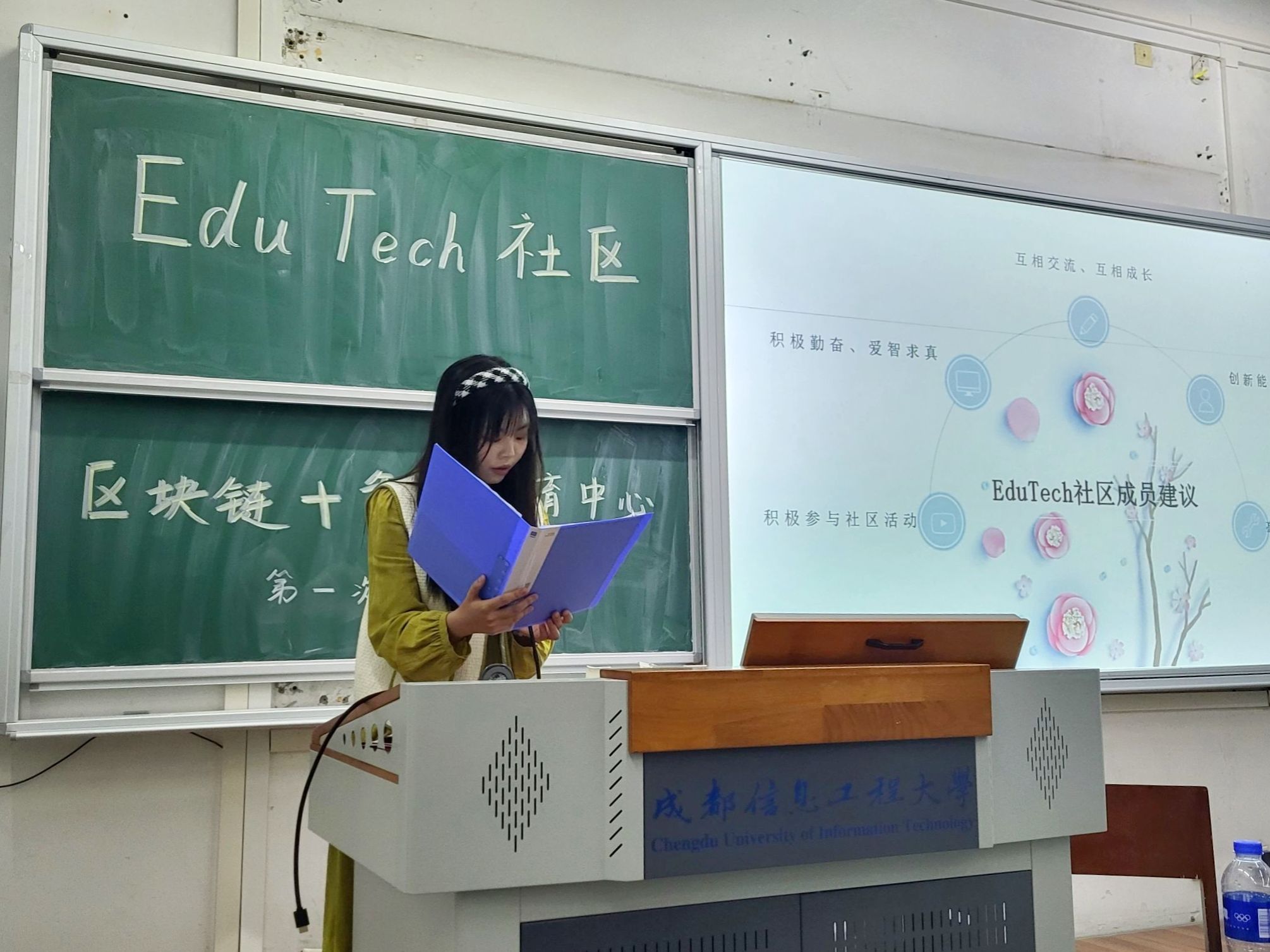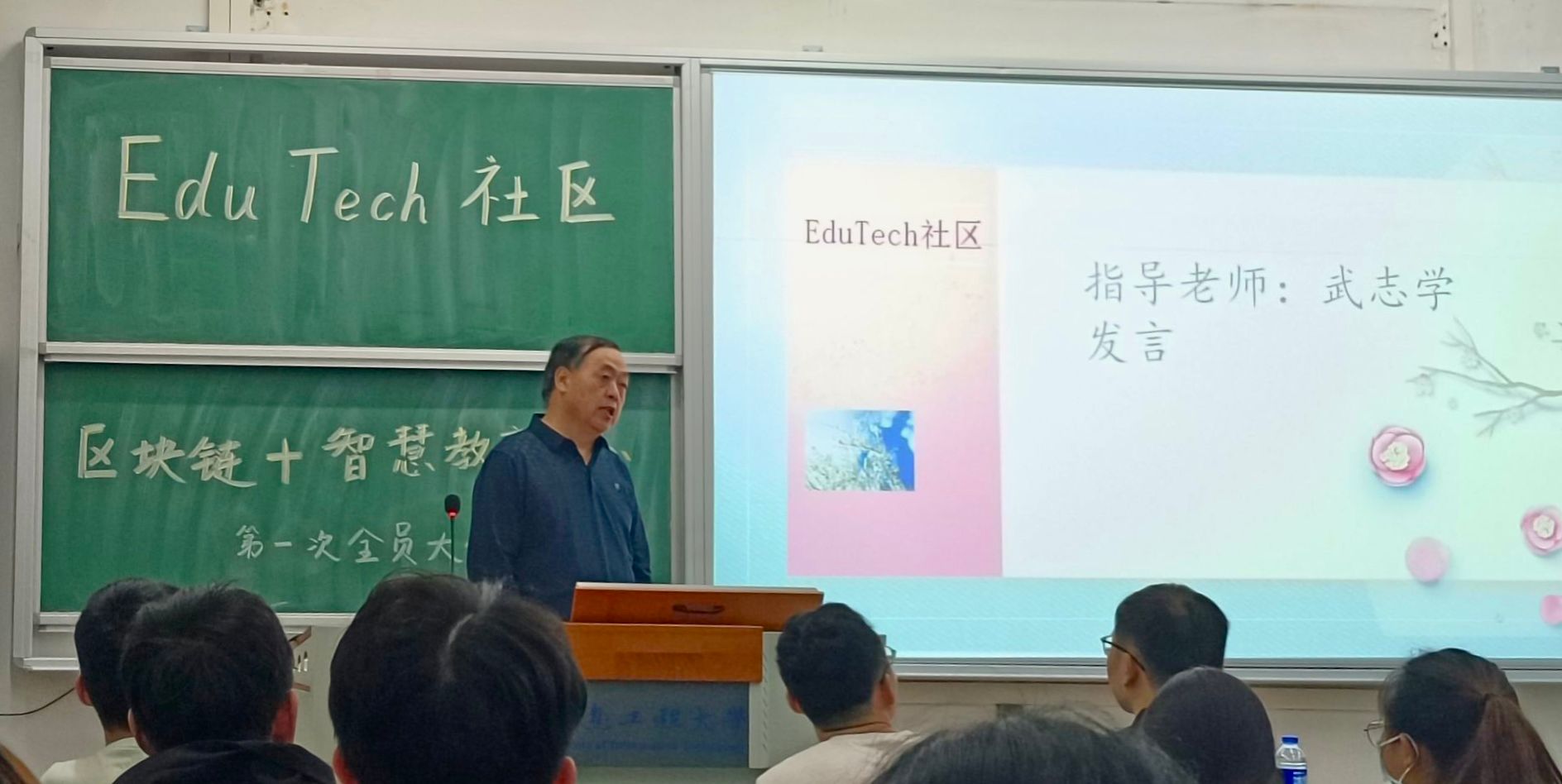 朱国周老师讲述了社区名字“EduTech”的由来,确定社区职能:给同学们提供一个学习、交流、实践、训练平台,在学习达到优良时,注重可迁移、不可替代能力的塑造。动员同学们共同努力把社区创造为有活力、有创新力、有持续动力的欣欣向荣的“家”。