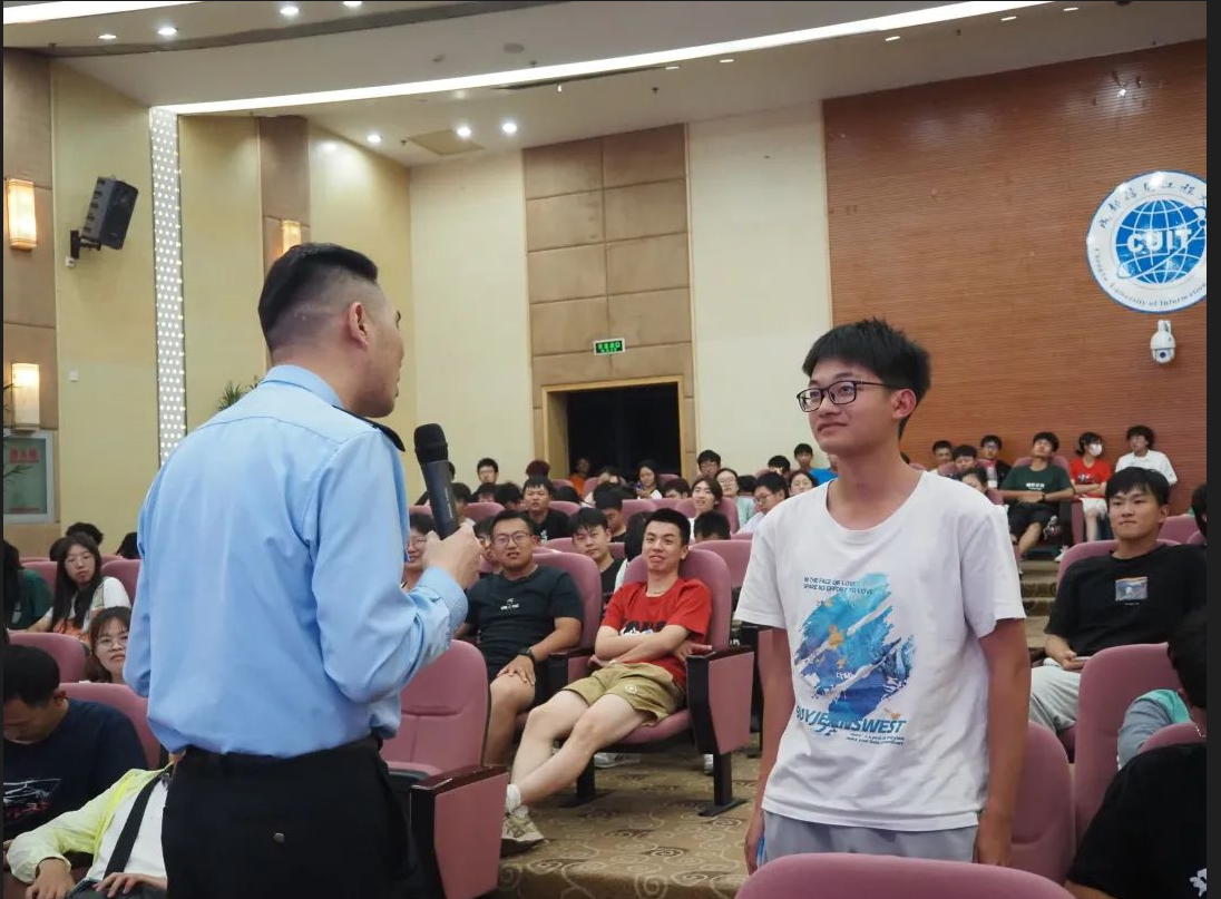 张警官通过对一些典型的诈骗情景进行现场破解,包括刷单类诈骗、“杀猪盘”诈骗、“冒充公检法”诈骗、贷款类诈骗、网购诈骗、冒充熟人诈骗等,让同学们树立了基本的风险防范意识,并提醒同学们在面对诈骗时,提高警惕,抛弃贪图便宜心理、盲目信任心理和虚荣心理。