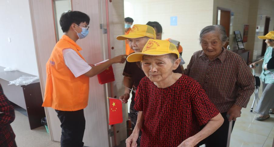 锦欣星光团队还为老人们表演了精彩的舞蹈表演等,为他们带来愉悦的心情。老人们纷纷拿起手中的小红旗,随着音乐的节奏一起舞动,场面温馨而欢乐。此外,团队成员们通过自己负责的小活动为老人们送上礼物,包括衣物、日用品和零食等。老人们接过礼物时,脸上洋溢着幸福和感激的笑容。