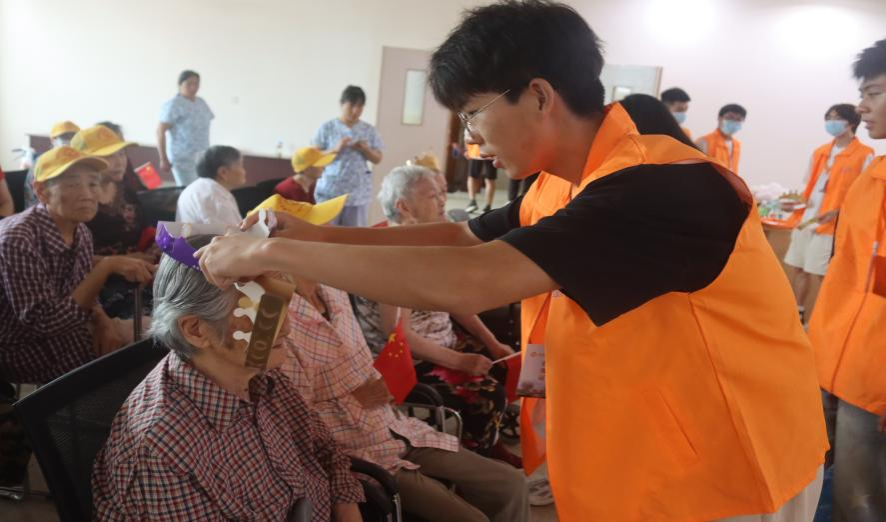 下午,志愿者们跟随工作人员来到了志愿活动服务现场,接受他们的任务:为今天过生日的老人庆生。大家积极地分工合作。