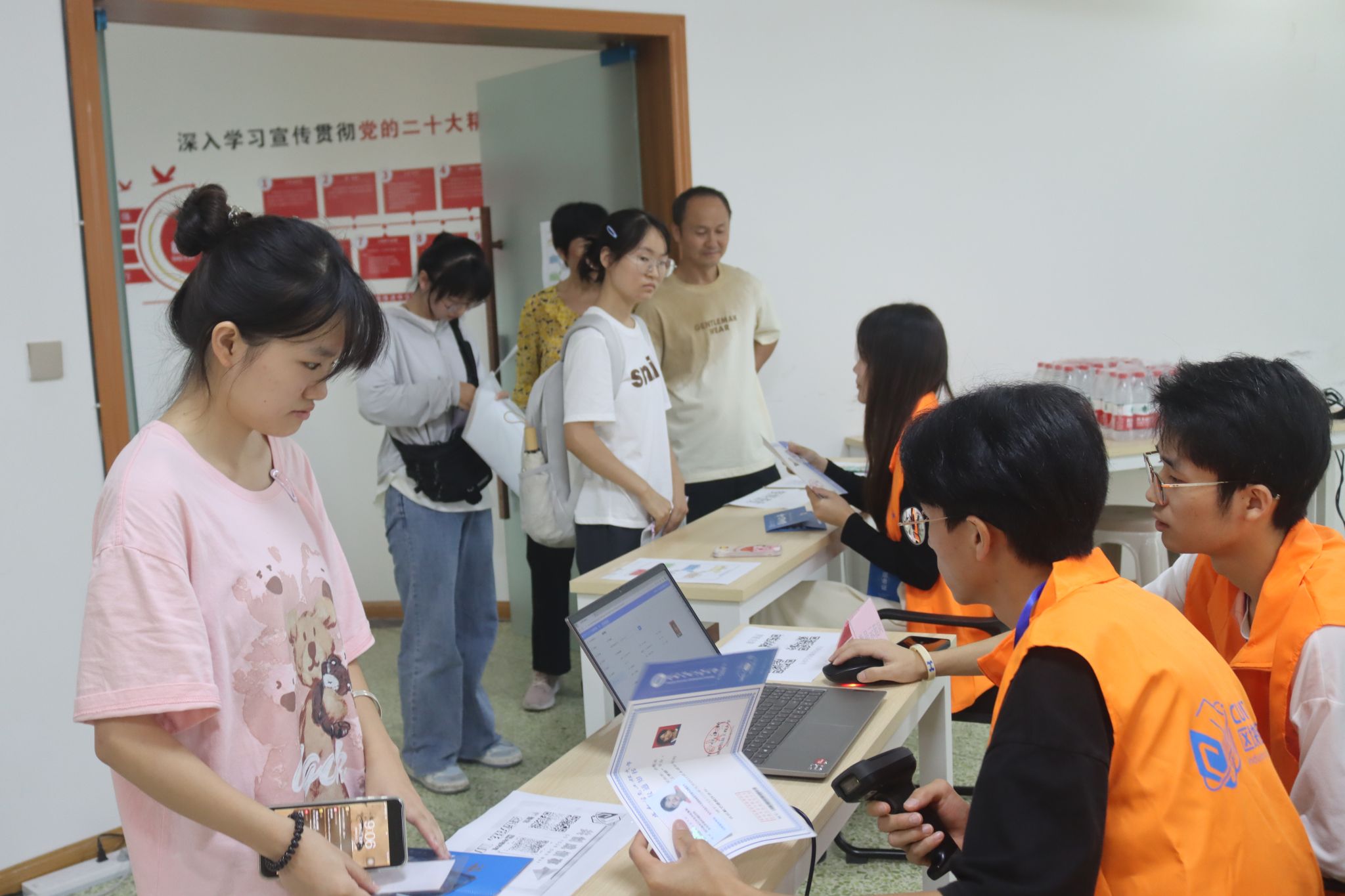 新生们在学长学姐的引领下,按照流程有条不紊地完成报到相关事宜。