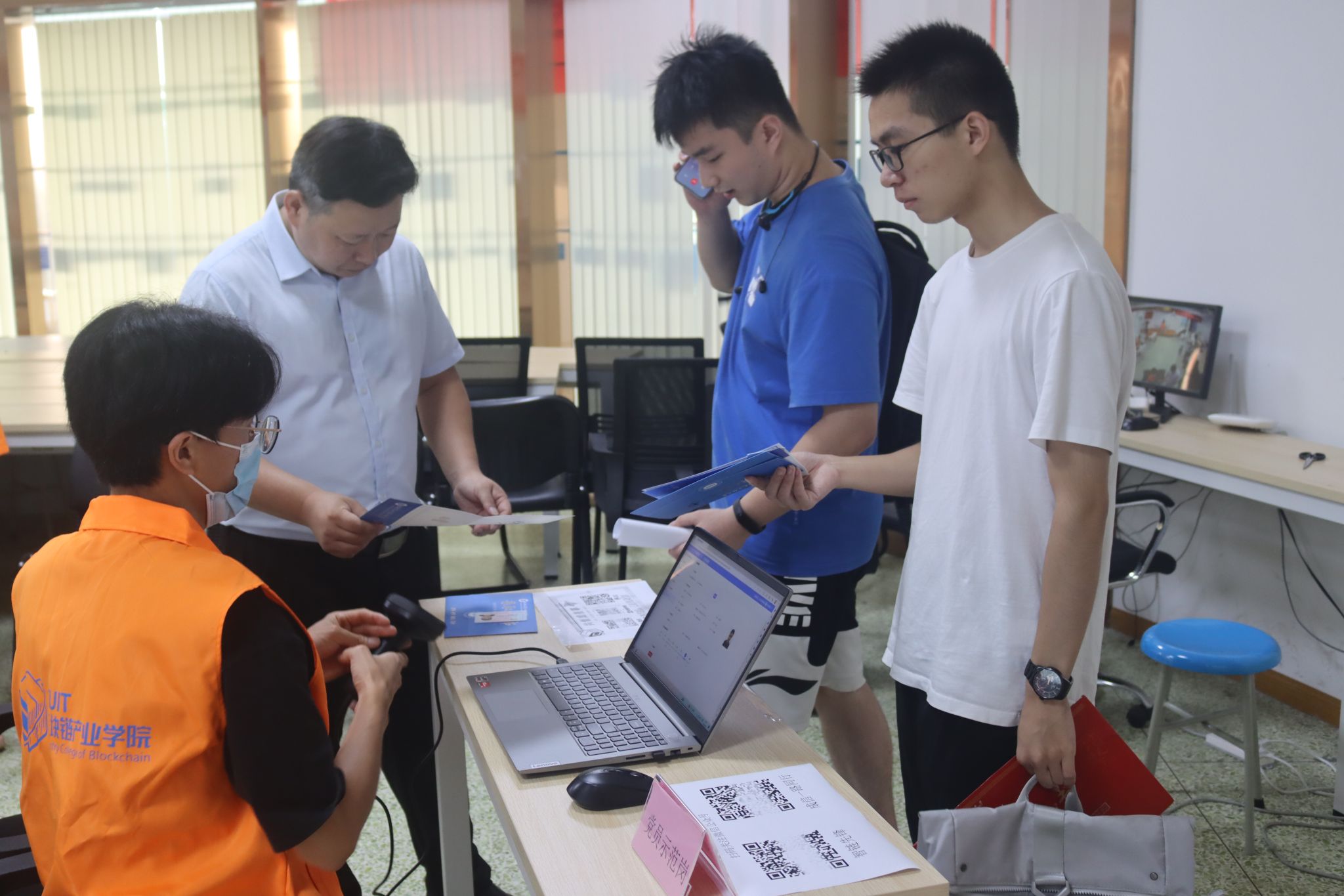9月4日,校园内弥漫着喜庆的氛围,区块链产业学院迎新工作在这个特殊的日子正式启动。志愿者们早早来到学校各个站点,热切地等候着来自祖国各地的新生们。