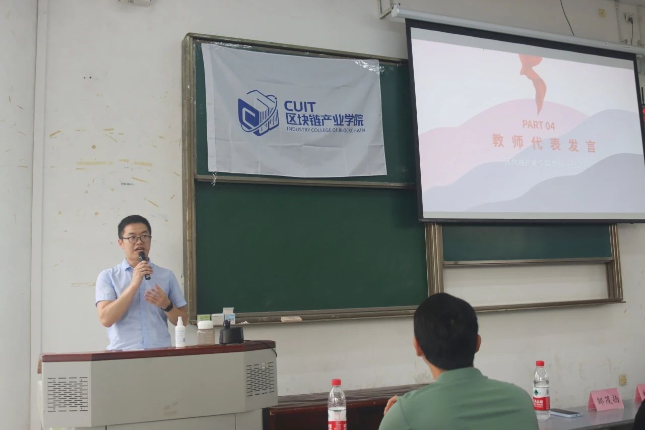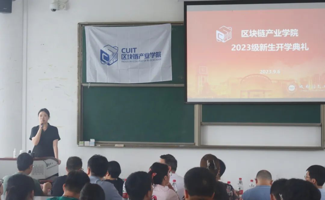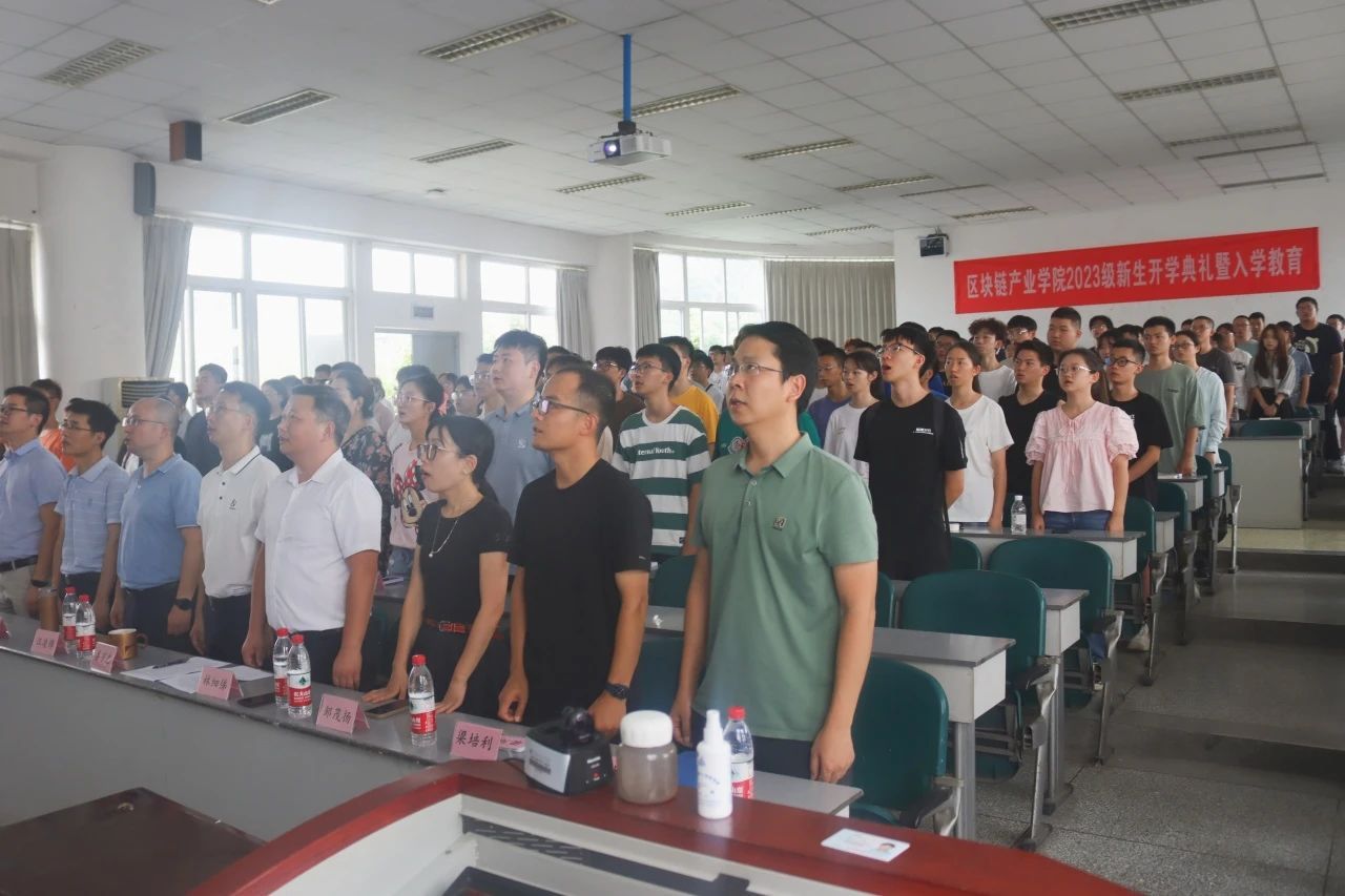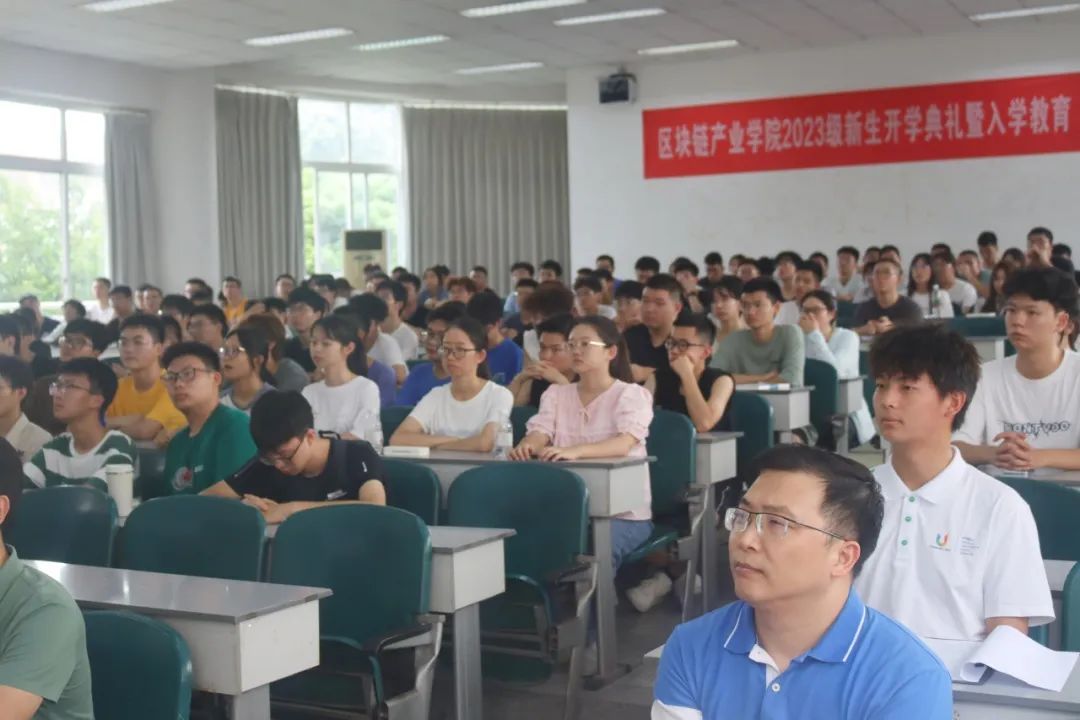 9月6日下午,区块链产业学院2023级新生开学典礼暨入学教育在4313教室举行。公司党委书记林细俤、公司党委副书记姜宇忠、学院副经理邹茂扬、区块链工程系主任汪凌锋、人工智能系主任高琳、公司党政事务中心主任王先宇、教学事务中心主任陈文雯、员工事务中心主任徐同、2023级班导师代表梁培利、何长春、赵军,以及学院产业导师代表及2023级全体新生参加此次开学典礼,典礼由学院辅导员罗霞主持。