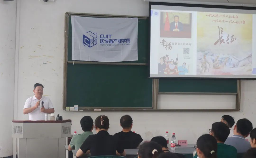 公司党委书记林细俤首先为新生们详细介绍了学校的历史、人才培养成效和科学研究的成绩,介绍了区块链产业学院的产教融合的办学特色,并作了题为《青春逢盛世 奋斗正当时》的新生寄语讲话,他希望同学们永保爱党报国之心,以坚定的理想信念筑牢精神之基;永葆奋进之姿勤学,做好学习规划和目标,掌握专业技能,练就过硬本领;在大学期间要加强人文素质修养和身体锻炼,智商与情商并重。他强调党的十八大以来,中华民族迎来了从站起来、富起来到强起来的伟大飞跃,实现中华民族伟大复兴进入了不可逆转的历史进程。生逢这样一个伟大的时代,同学们将以新一届成信人的身份追随前辈的足迹开启崭新的人生篇章,创造属于自己的人生辉煌!