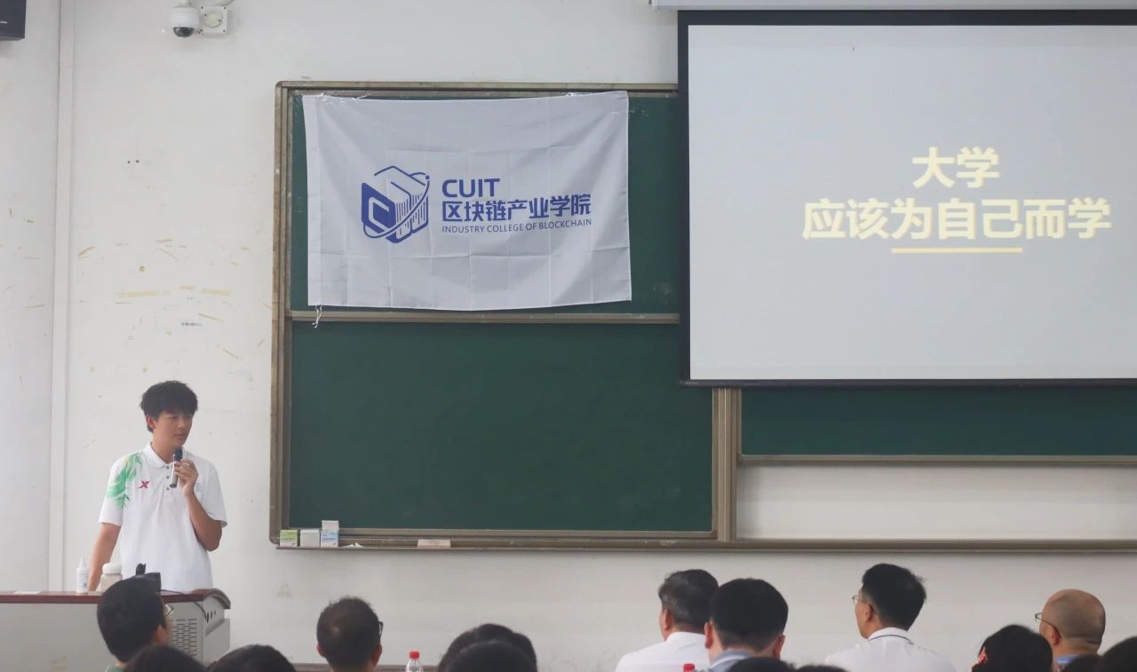 优秀员工代表,2022年青春榜样十佳班长、伟德国际victor1946员工区块链协会会长程诗杰同学分享了自己的学习和成长经历,为新生们提供了宝贵的经验和启示。