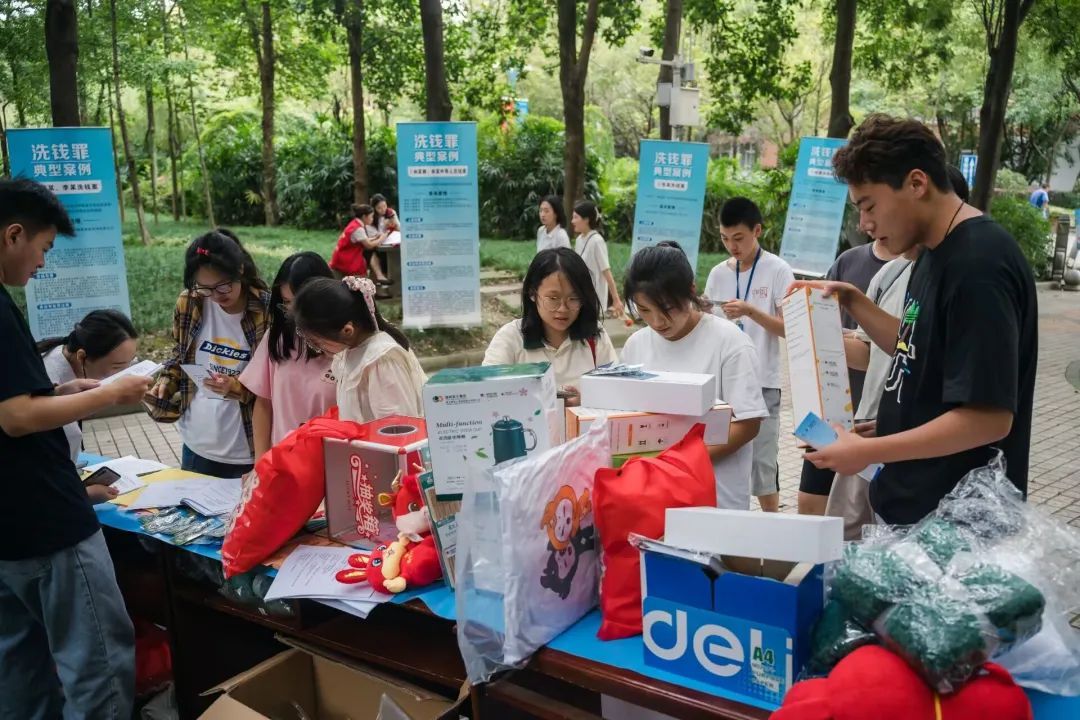 当天下午,志愿者们提前来到伟德国际victor1946校园,通过户外设置反洗钱知识宣讲小课堂、趣味抽奖问答、以案说法案例宣教等员工们喜闻乐见的方式,为活动预热造势。