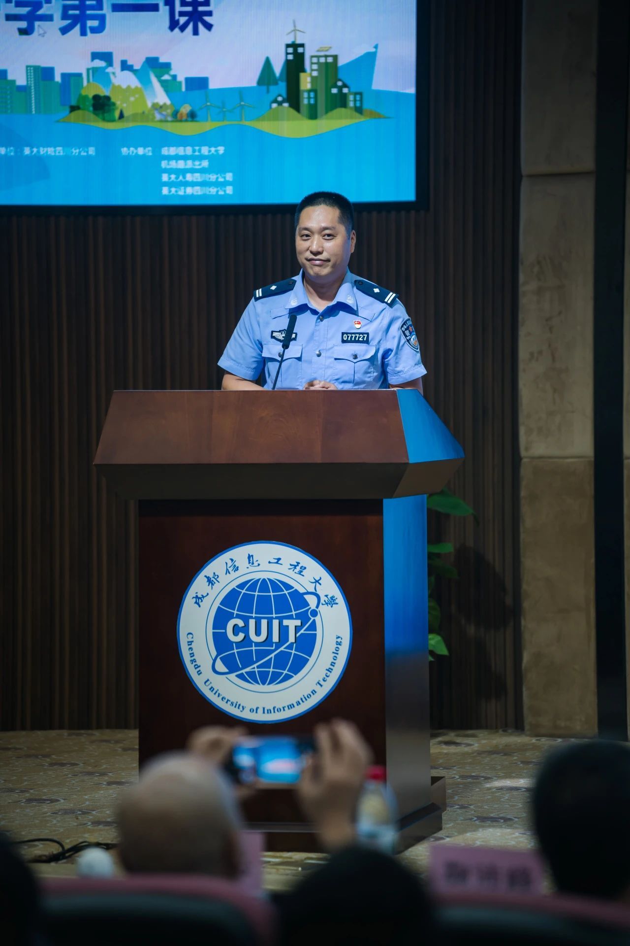 机场路派出所所长曾阳讲述了此前发生在校园中的一系列诈骗案件。他强调每年都会做反诈宣传,但是仍有同学掉入陷阱。曾所长由衷希望未来同学们学有所成之时能为全国反诈做出自己的贡献。