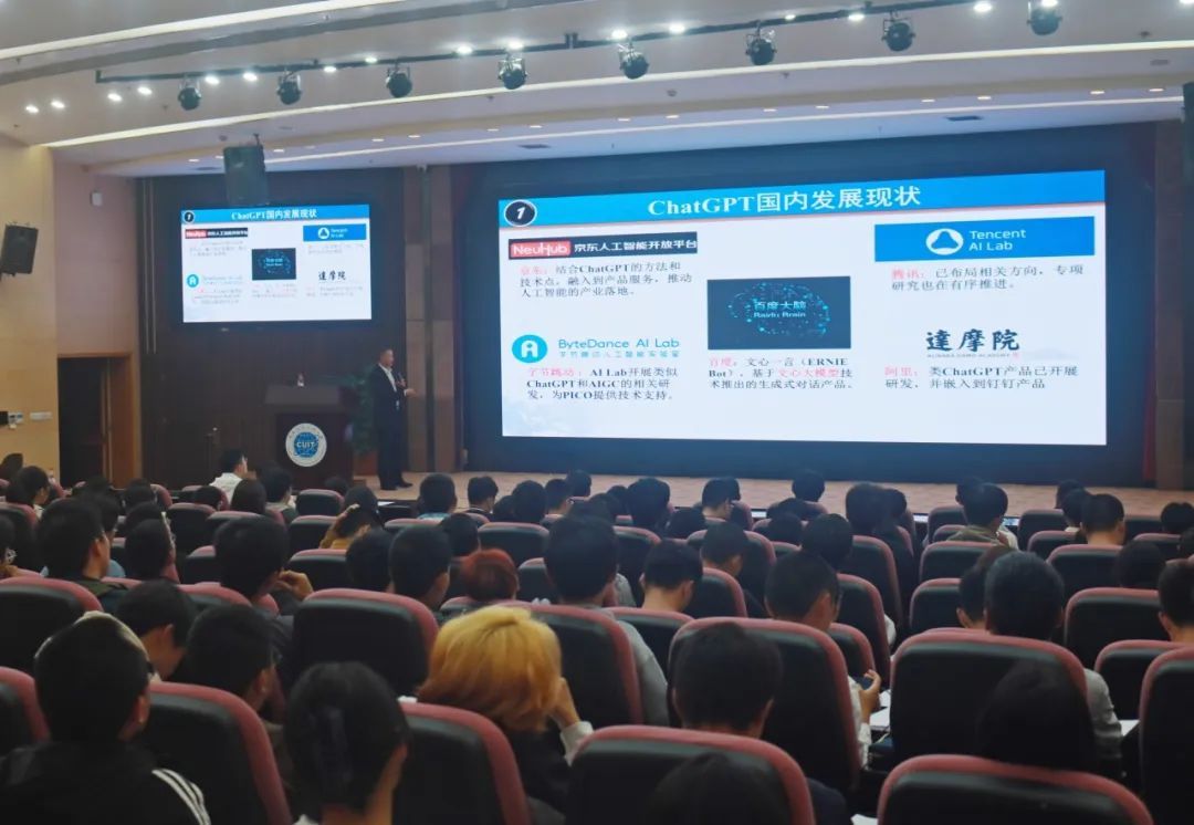 秦小林教授就当下的科技焦点——ChatGPT谈起,向同学们解释了ChatGPT的基本原理,并详细介绍了ChatGPT在国内外的发展现状和商业模式。他表明,AI技术及应用即将迎来跨越式大发展。