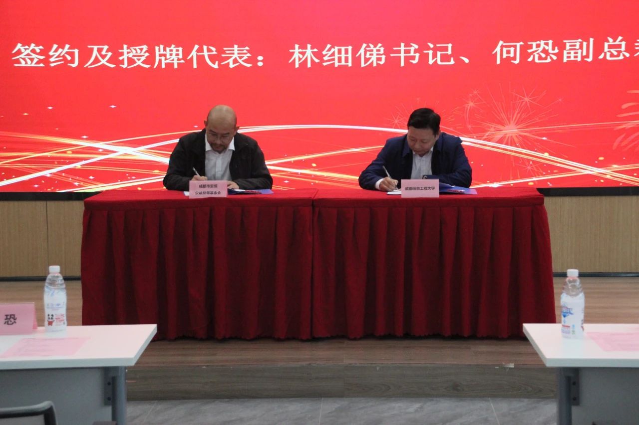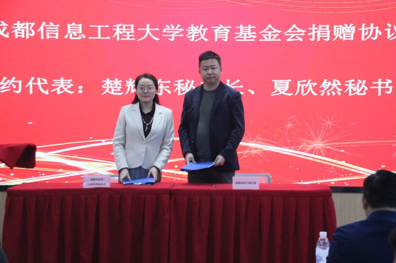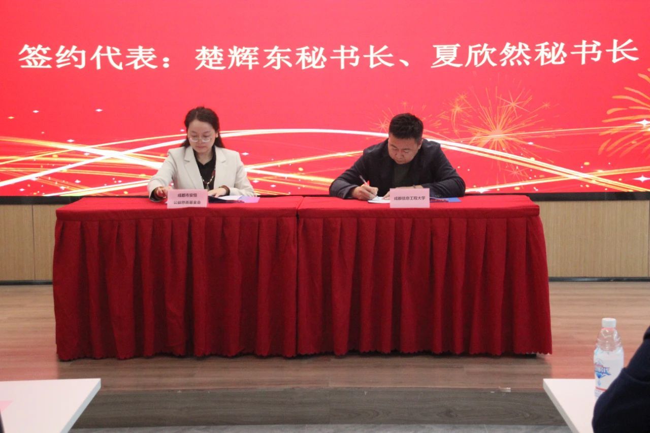 参观结束后进行了“安恒星火“励学金的签约暨捐赠仪式。安恒信息副总裁何恐、安恒信息成都工程研究院经理陈曦、成都市安恒公益慈善基金会秘书长夏欣然、营销中心四川办副主任王皓出席此次仪式。