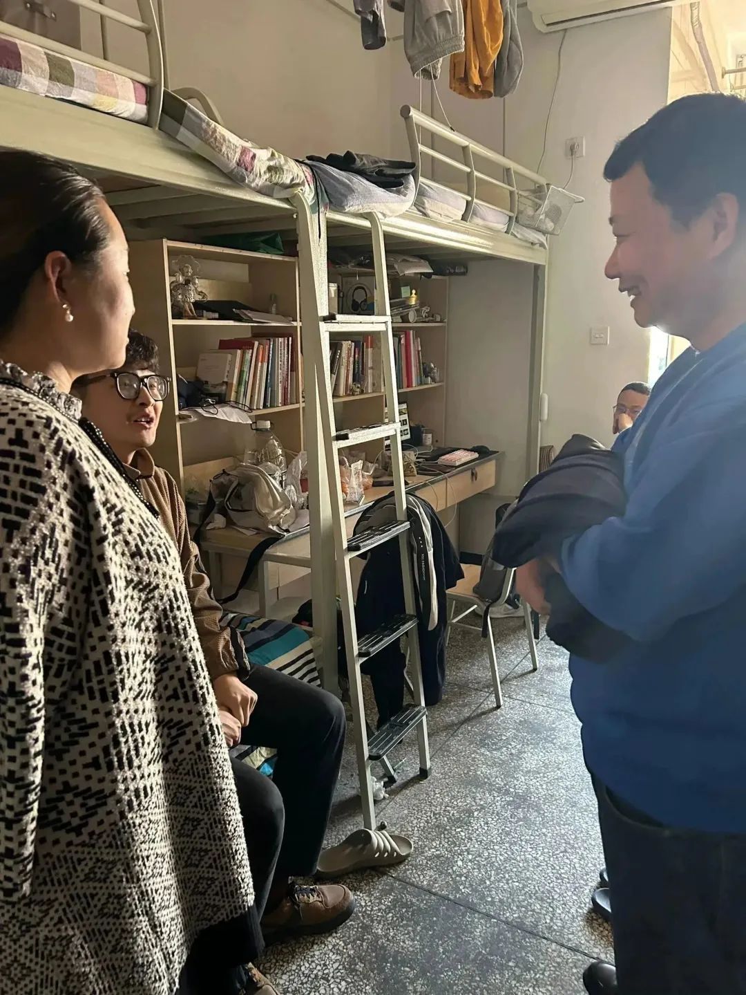在毕业班宿舍,林细俤与徐同就毕业班同学目前所面临的学习、生活、就业、毕业设计和学业完成情况等问题与同学们进行了亲切地交谈。在交谈中,老师们不时鼓励同学们要多参加学校、学院举办的招聘会,多渠道地获取就业信息,并提醒毕业生要抓住秋招这个就业招聘的“黄金期。