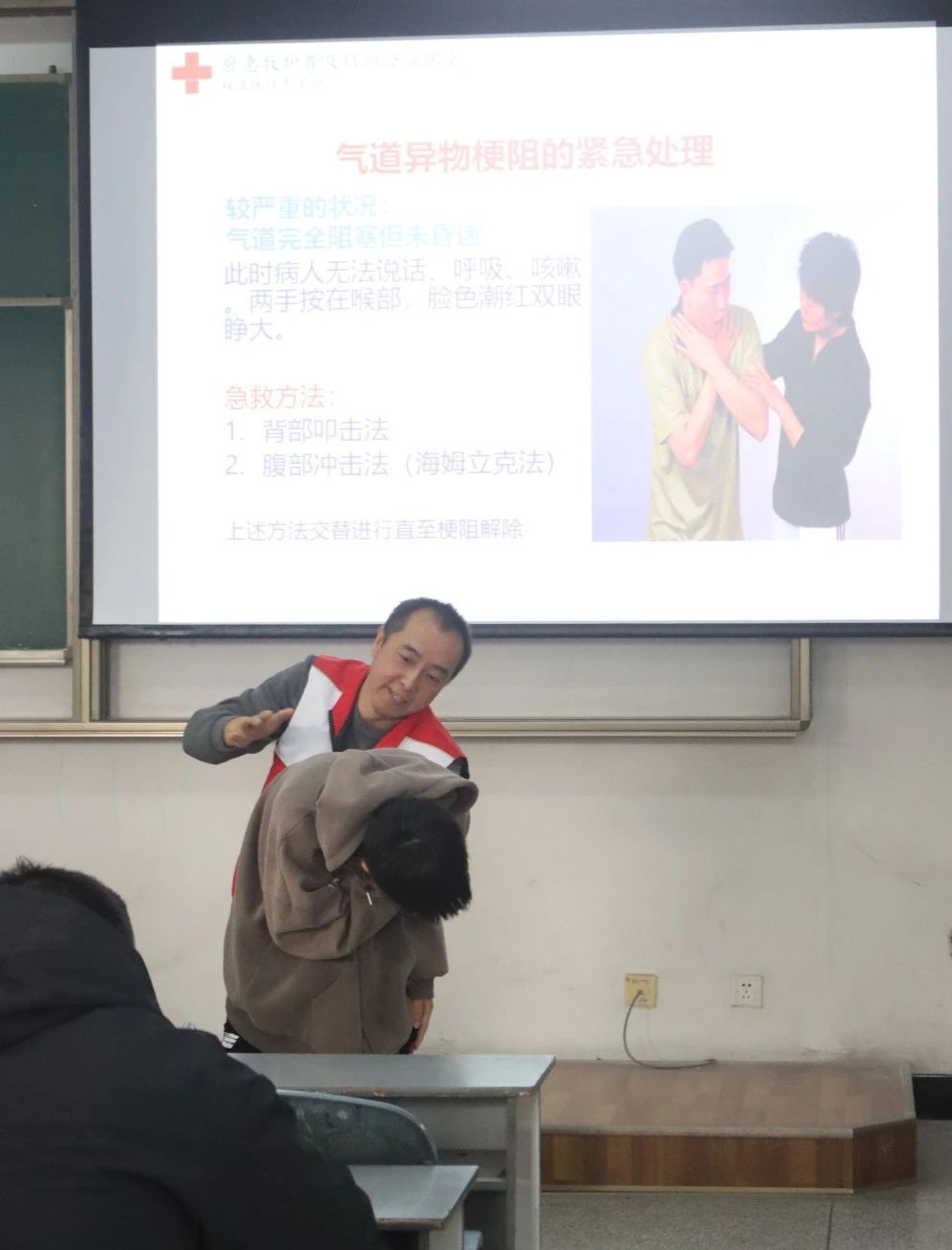 主讲老师通过理论讲解和实践操作相结合的形式,为同学们全方位讲解急救知识。