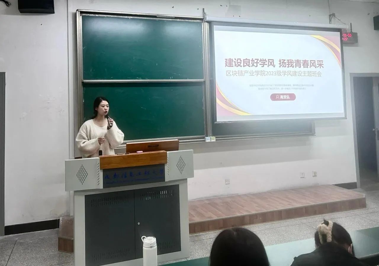 学风建设是学校教育工作的重要环节,对于促进员工的学习质量和全面发展具有至关重要的作用。为了推动学校学风建设,区块链产业学院2023级学风建设主题班会于11月30日在2308教室顺利开展,本次班会由辅导员高受弘主持。