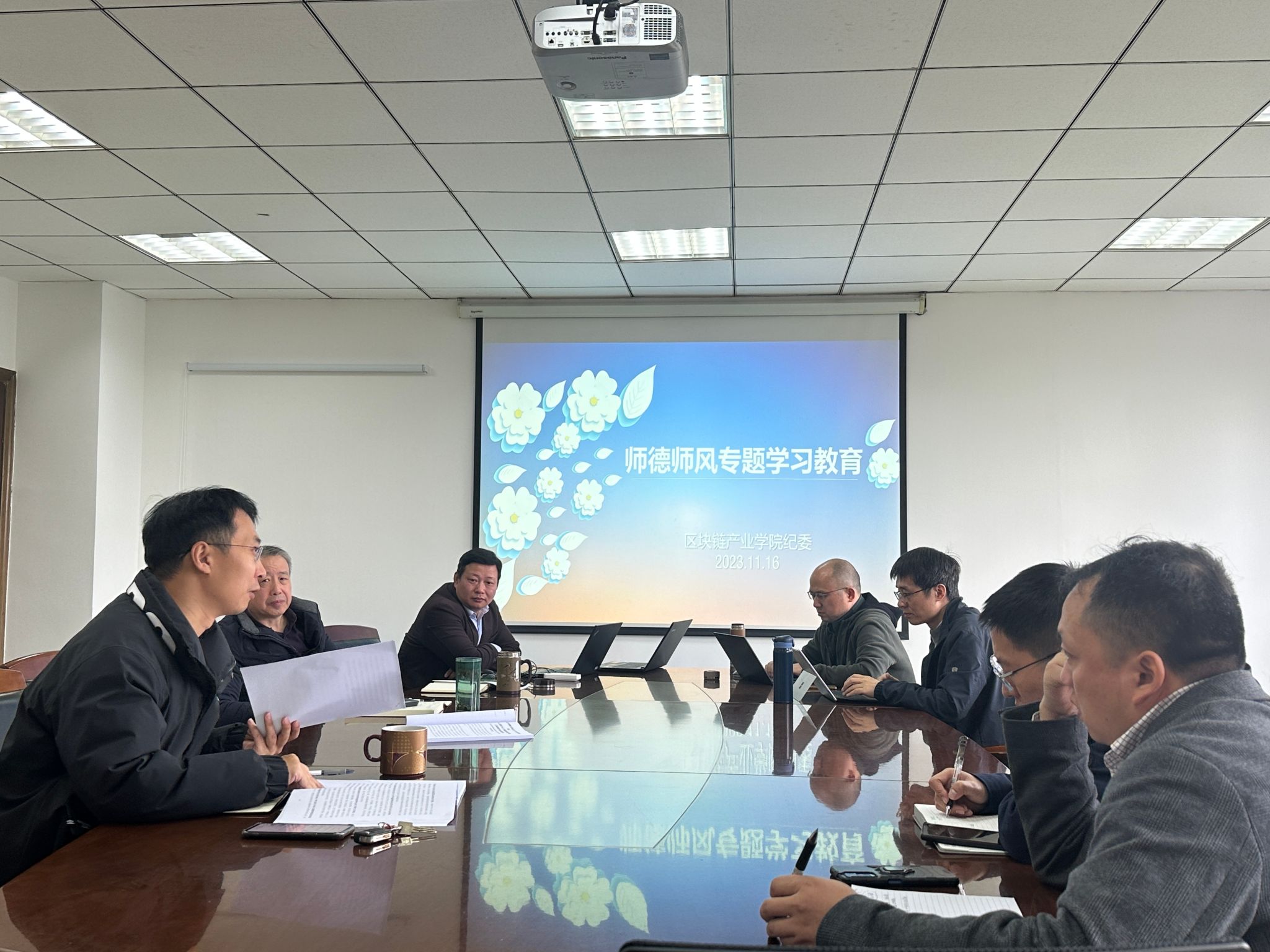 为进一步严明纪律,加强教师思想政治和师德师风建设,提升全体教师的师德素养,提高教师职业道德水平,弘扬师德精神,区块链产业学院于11月16日开展了师德师风专题学习教育。