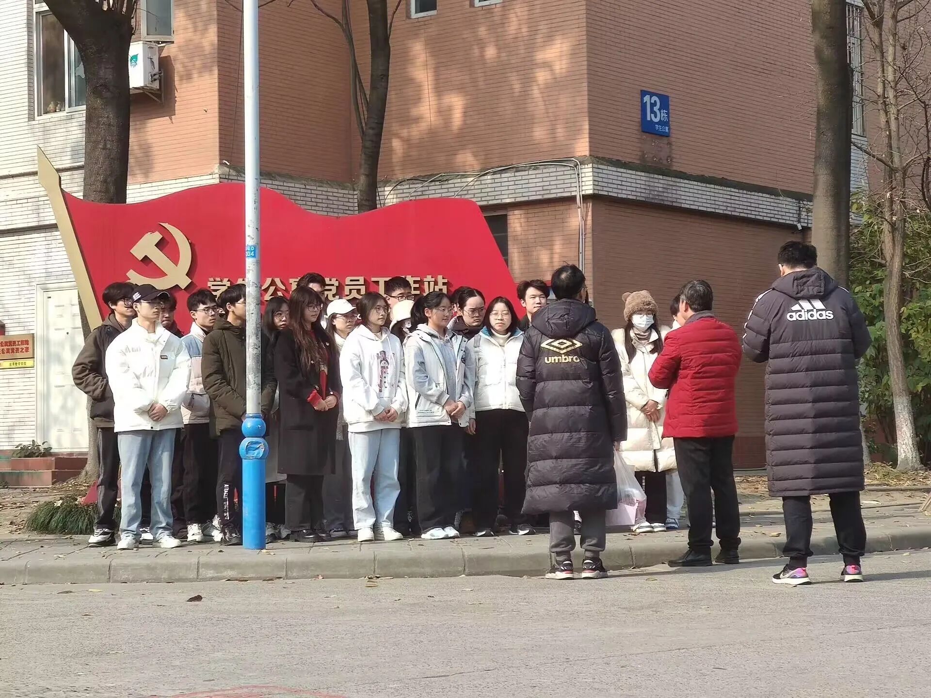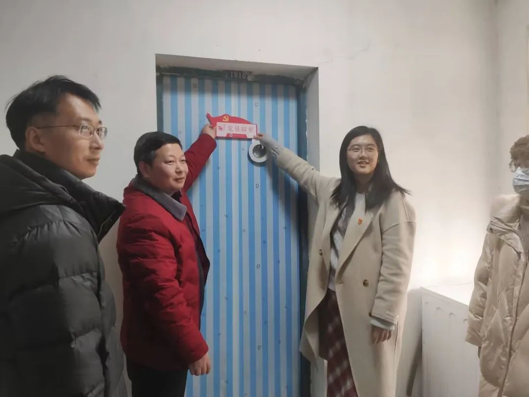 随后,老师们共同前往宿舍楼,为获得荣誉的寝室进行授牌。