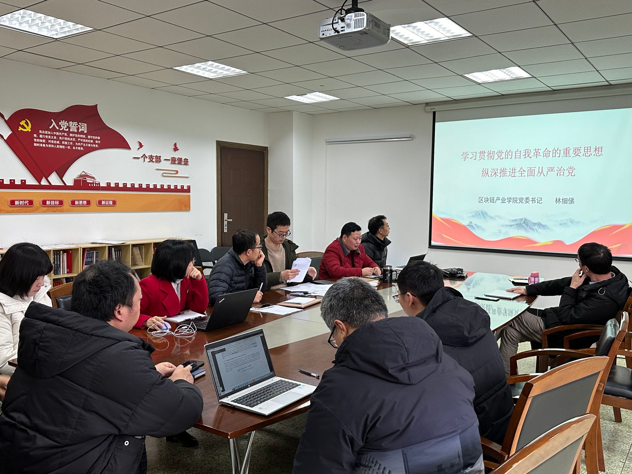 林细俤系统回顾在新时代十年全面从严治党的实践和理论探索中,我们党关于党的自我革命形成的一系列重要理论成果;讲到了如何深刻理解习近平总书记阐述的我们党为什么要自我革命、为什么能自我革命、怎样推进自我革命这三个重大问题以及如何立足单位工作实际,推动党的自我革命开创新局面。