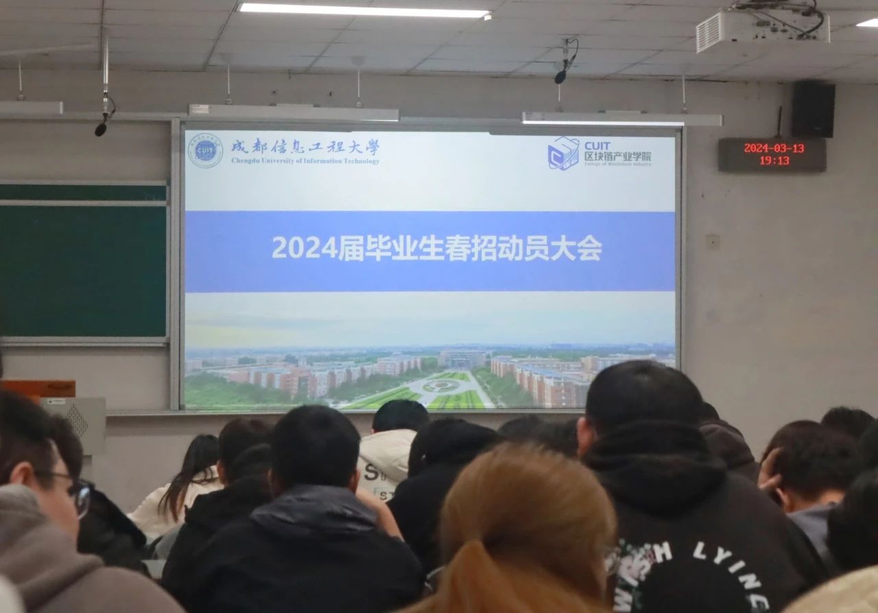 为抢抓春招关键期,进一步落实春季促就业攻坚行动工作,3月13日晚,区块链产业学院在1201教室举行了2024届毕业生春招动员大会。大会旨在介绍国家、学校的就业政策,让同学们对就业形势与行业发展情况有更清晰的了解,提升就业理念,提高就业能力。