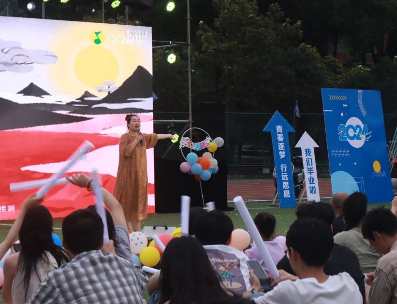 晚会现场灯火通明,人声鼎沸,同学们相互传递着深情的祝福。随着悠扬的歌声响起,大屏幕播放了一段回顾老员工活的精彩视频,那些熟悉的画面和难忘的瞬间,无不让人感慨万千。最后,在《少年》大合唱中,毕业晚会圆满落幕。