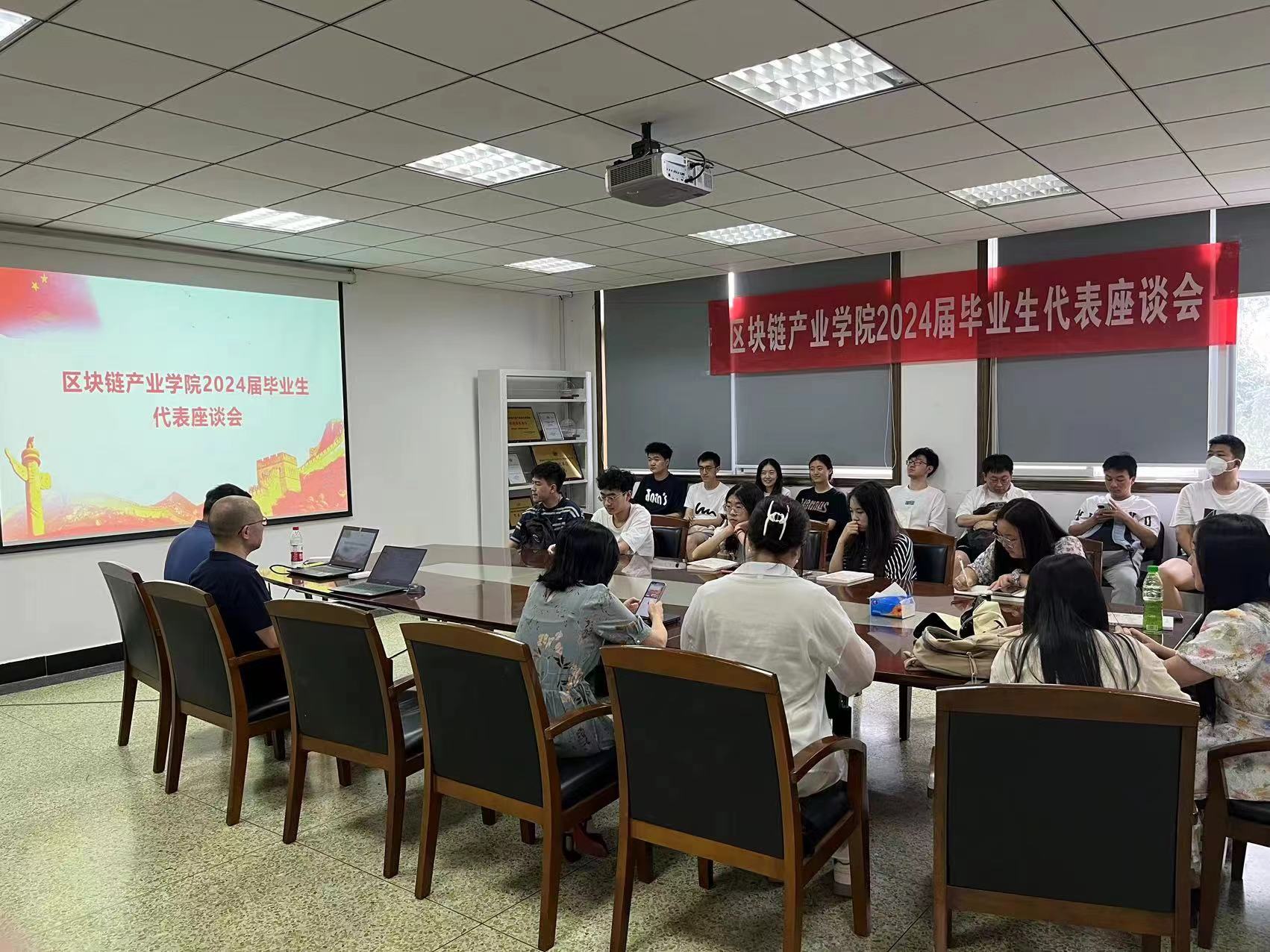 6月14日下午,区块链产业学院2024届毕业生代表座谈会在信息楼4楼三会议室举行。公司党委书记林细俤、区块链工程系系主任汪凌锋及毕业班辅导员徐同老师与近30位优秀毕业生代表们相聚一堂,亲切交流。座谈会由林细俤主持。