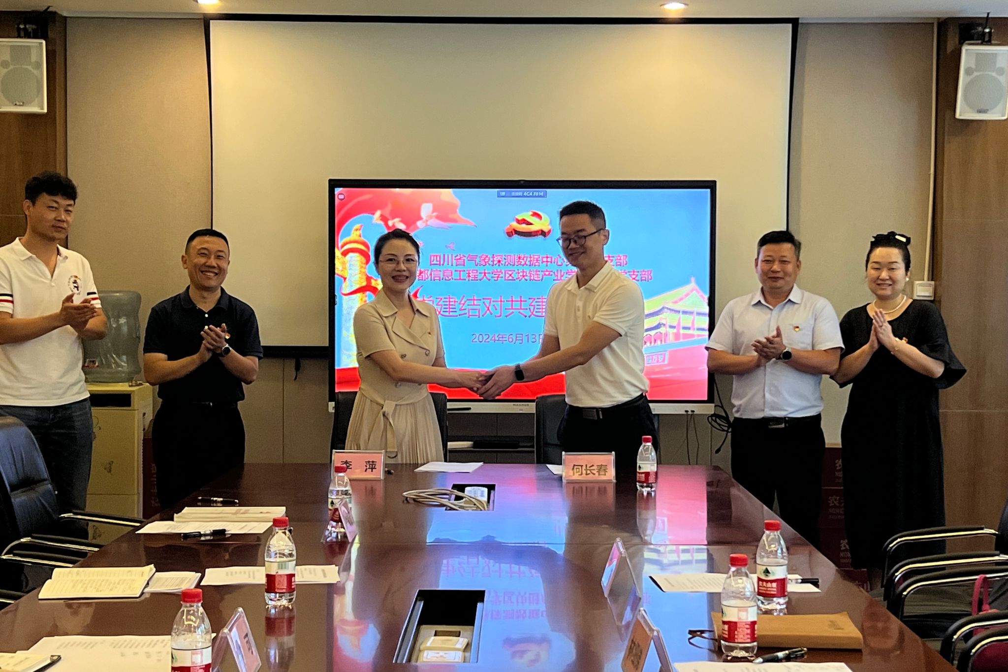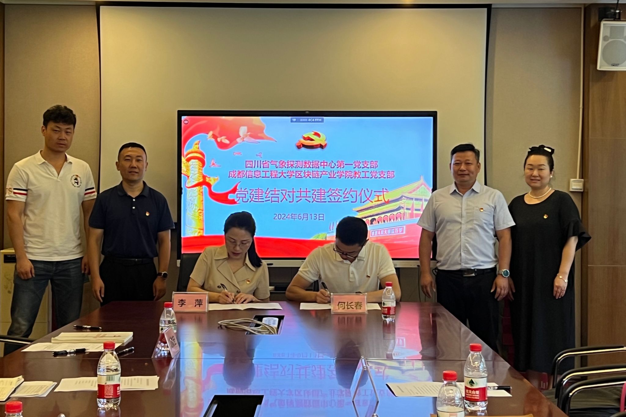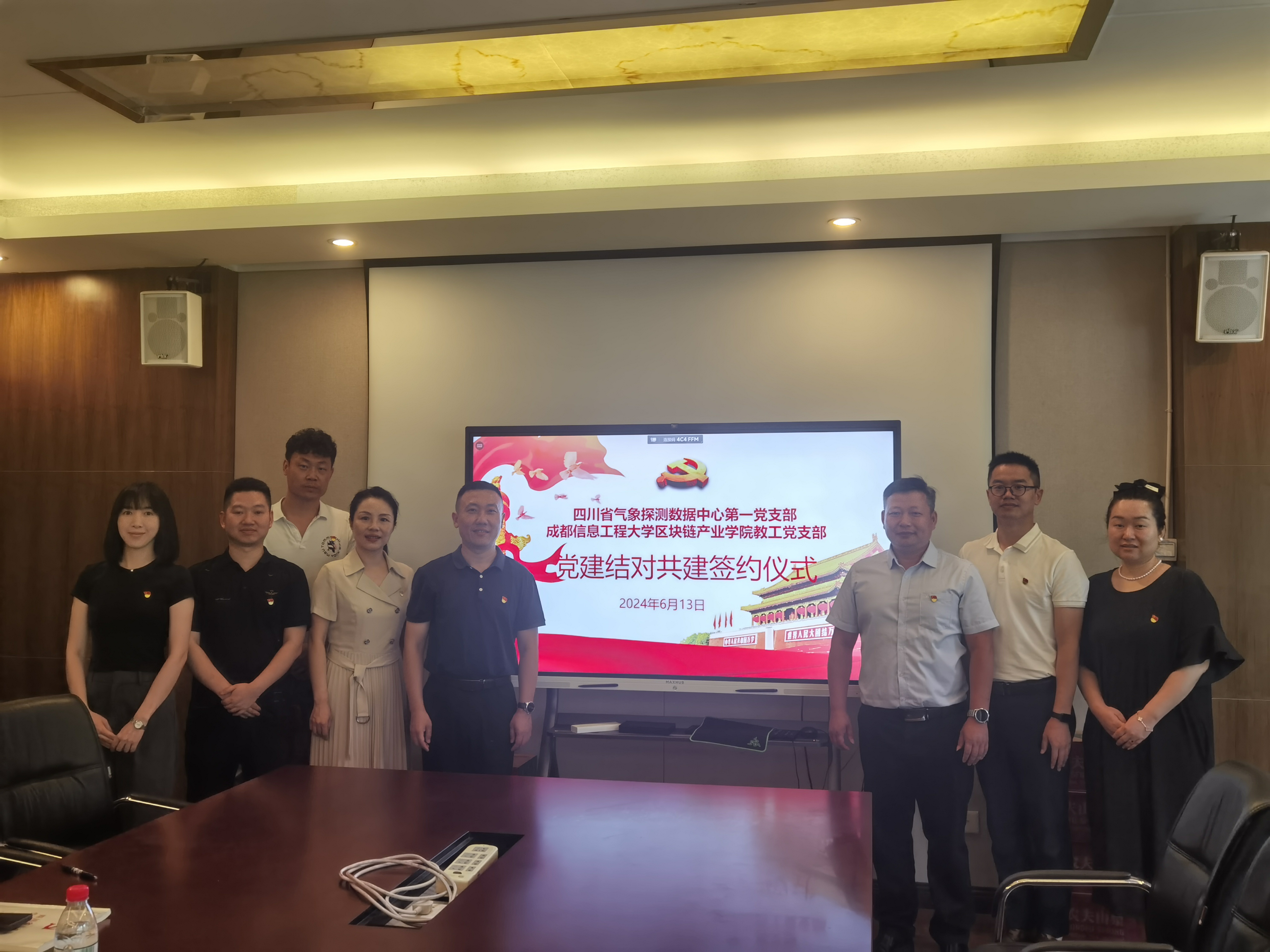 为探索新时代高校基层党建工作新思路、新模式,以党建引领高质量发展,构建优势互补、互相促进、共同提高的党建工作新格局,七一前夕,四川省气象局数据中心第一党支部与公司区块链产业学院教工党支部签署局公司党组织结对共建协议。数据中心主任、党总支书记许可,区块链产业公司党委书记林细俤出席签约仪式,数据中心副主任李萍担任主持。