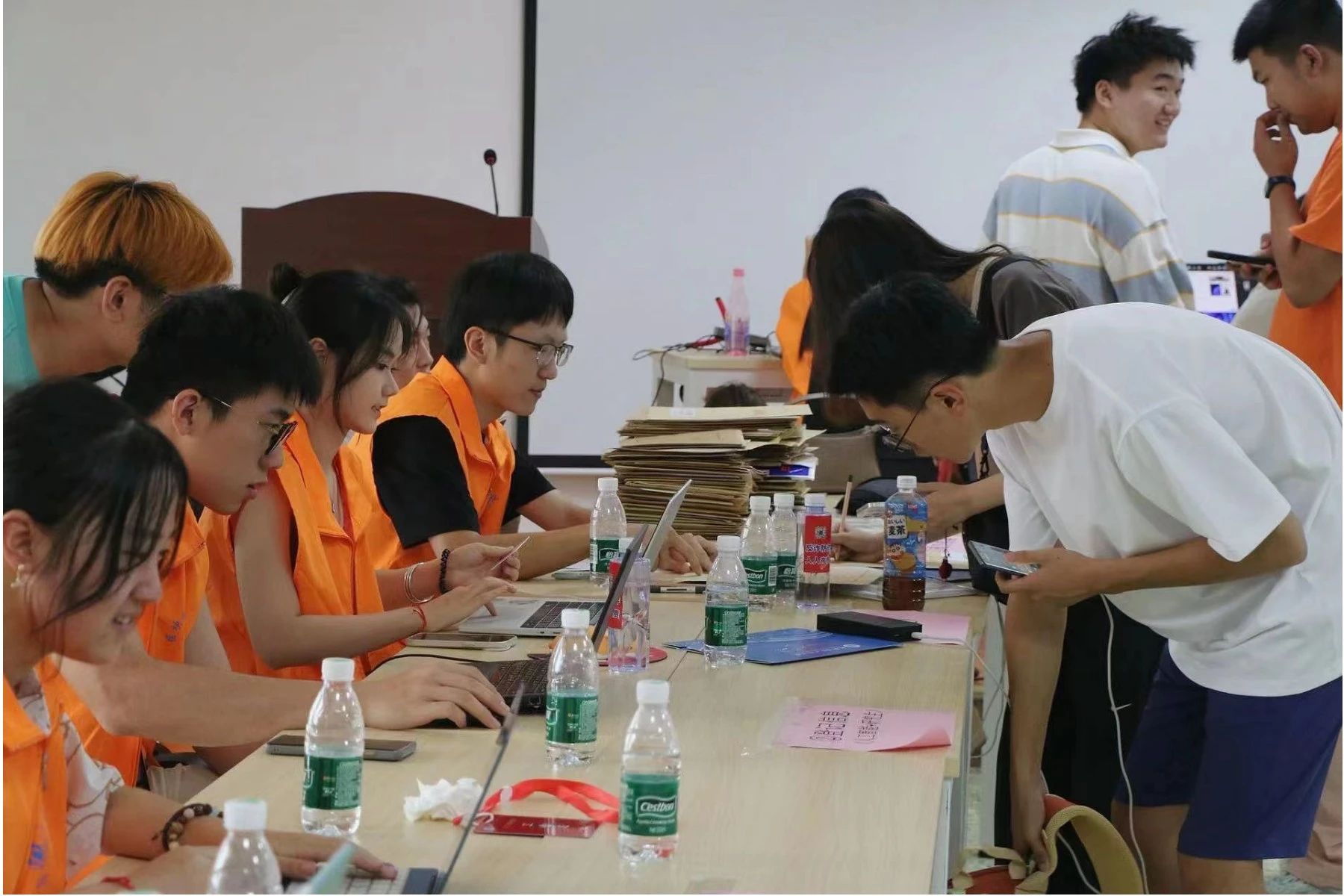 在志愿者的帮助下,新生有条不紊的按照报道流程完成相关事宜:出示录取通知书、信息检录、信息确认、档案收集、人脸录入、发放开学礼包。
