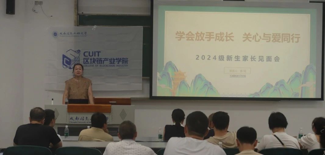 8月31日下午,区块链产业学院在4112教室召开了2024级新生家长会。公司党委书记林细俤、学院副经理邹茂扬、区块链工程系主任汪凌锋、人工智能系主任高琳、实验室主任刘强、学院员工事务中心主任徐同、学院2023级辅导员高受弘参加此次会议,会议由学院团委书记兼2022级辅导员罗霞主持。