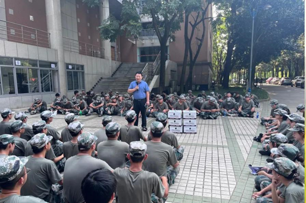 林细俤首先代表学院向全体带训教官和参训员工致以诚挚的慰问,对教官们辛勤付出表示衷心感谢。他对参训的2024级新生们不畏酷暑,展现出的良好风貌和顽强拼搏的精神给予了充分肯定,他强调军训作为入学教育的第一课,对于员工的成长成才具有重要意义,军训不仅是对同学们身体素质的锻炼,更是对老员工纪律观念、团队协作精神和爱国主义情怀的一次深刻洗礼。他勉励同学们:一、要珍惜这次难得的军训机会,将军训中学到的优良作风和顽强意志带到今后的学习和生活中去,不断挑战自我、超越自我,为学院争光添彩;二、尽快转变角色,端正学习态度,要意识到高中与大学的差别,合理使用电脑,增强自控力,保持良好的学习状态,在未来的学习中脚踏实地,以饱满的热情和昂扬的斗志迎接各项挑战,努力成为德智体美劳全面发展的社会主义建设者和接班人。同时,他也提醒大家要注意身体,多喝水,合理安排休息,如有突发问题及时与教官与辅导员联系,确保军训活动安全有序进行。随后,学院领导为同学们送上电解质水,既表达了学院的关怀和人文精神,也是对大家日夜艰苦训练的肯定和赞扬。