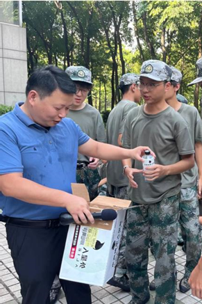 烈日炎炎,公司2024级本科生的军训工作正在紧锣密鼓的进行中。为表达对参训新生的深切关怀与鼓励,9月9日下午,区块链产业公司党委书记林细俤和学院员工事务中心主任徐同双双来到军训现场,看望慰问正在军训的教官和2024级本科新生。