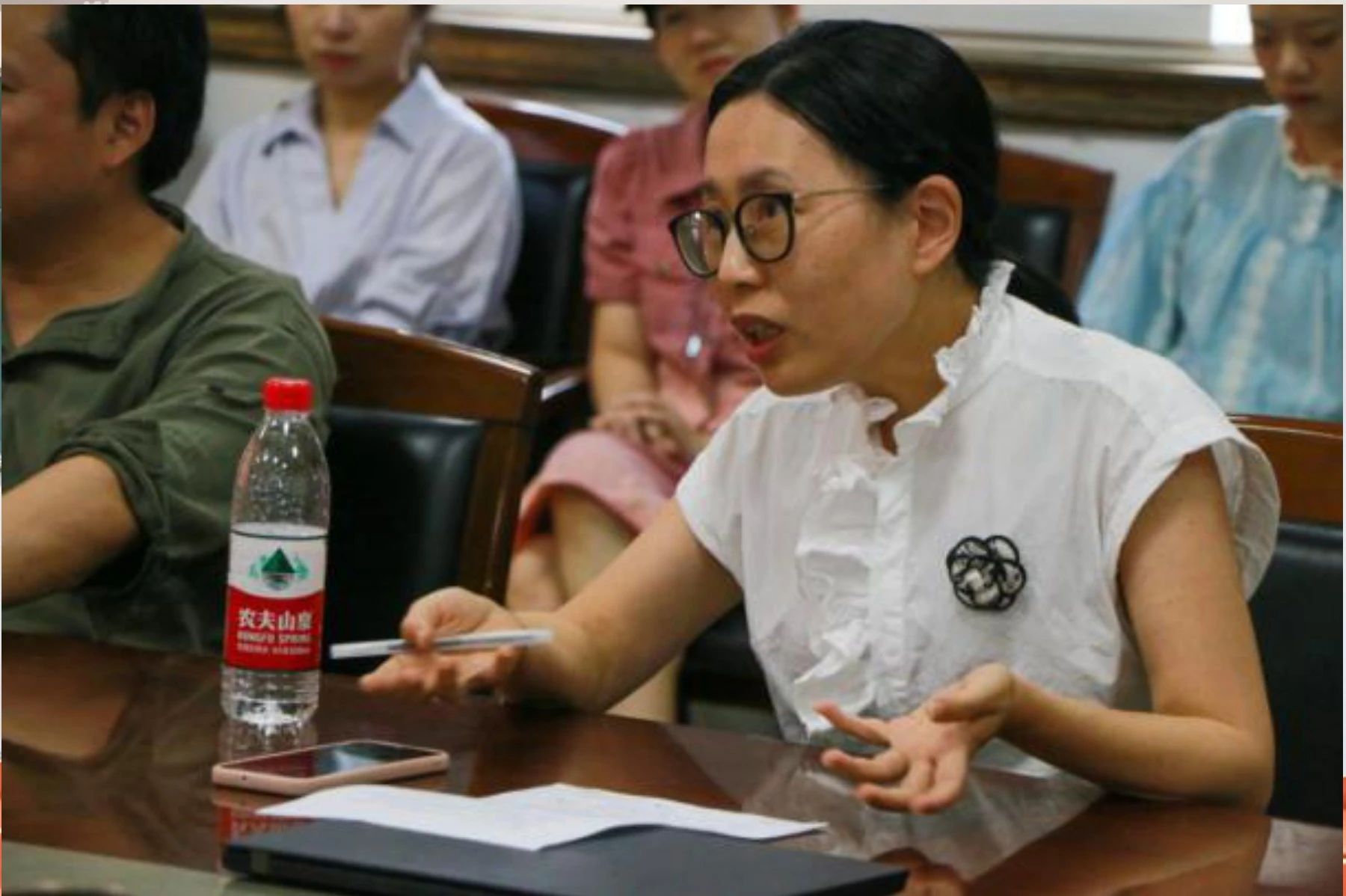 献花仪式后,学院组织了座谈会。参会老师围绕“弘扬教育家精神”进行学习交流,为学院发展建言献策。