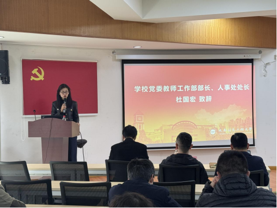 杜国宏强调,人工智能与区块链技术的快速迭代对教师队伍提出更高要求,要求通过“师德师风+技术能力”双线并进,打造适应数字化转型的高水平团队队伍。同时她给学院教职工讲解学校职称晋升政策,从教学和科研两个方面规划教师发展路径。