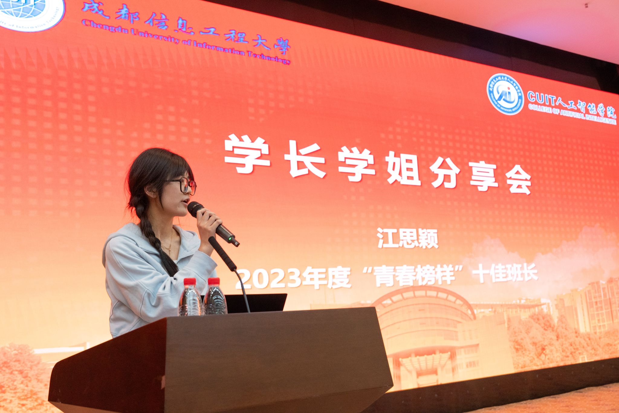 在“学长学姐分享”环节,员工代表江思颖分享了她的学习经验和成长感悟,为低年级同学提供了宝贵的借鉴。