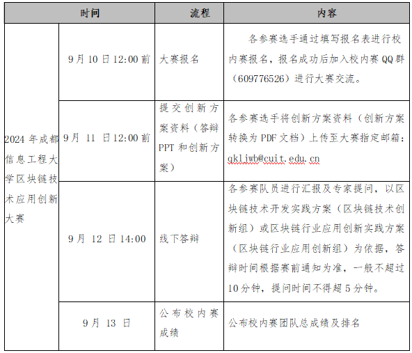 具体事项详见《2024年四川省老员工区块链技术应用创新大赛暨川渝老员工区块链技术应用创新大赛校内选拔赛竞赛方案和通知》附件。