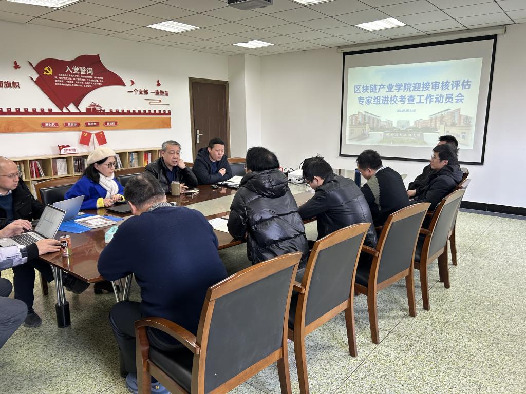 2023年开学伊始,区块链产业学院在信息楼四楼第三会议室召开了迎接审核评估专家进校考察工作的动员大会。会议由经理李飞主持,全院教职工参加了此次会议。