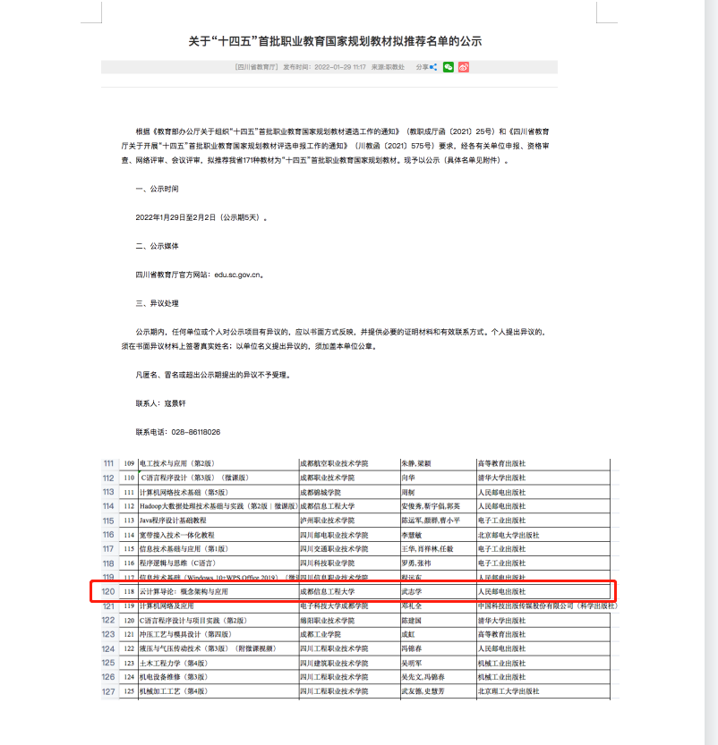 恭喜学院武志学教授获得四川省首批“十四五”职业教育规划教材。