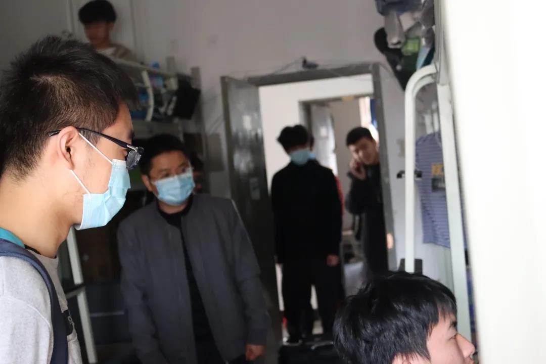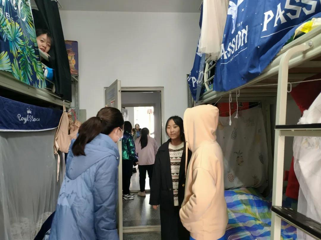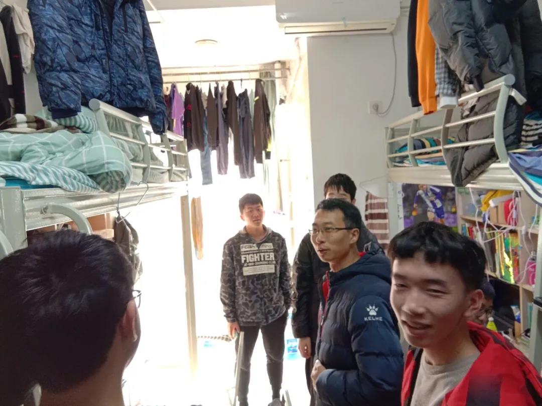 走访过程中,何书记和姜书记对各寝室存在的安全隐患问题进行了排查,尤其是针对冬季取暖设备、插线板、充电器等寝室常用电器进行了重点检查。于此同时,老师们温馨提醒同学们杜绝使用违规电器,保证用电安全,爱护寝室环境,疫情期间保持寝室卫生整洁。