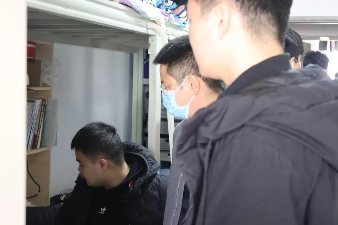 2020年12月8日中午,区块链产业学院团委部分员工干部在公司党总支书记何晋、副书记姜宇忠和辅导员老师徐同的带领下,对公司全部员工寝室冬季安全及卫生情况进行了检查。
