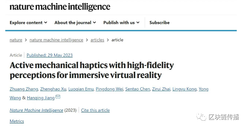 伦敦时间5月29日16:00,Nature Machine Intelligence(《自然-机器智能》)在线发表了西湖大学姜汉卿团队的最新研究成果“Active Mechanical Haptics with High-Fidelity Perceptions for Immersive Virtual Reality”,在国际上首次提出并开发了“高保真主动机械触感交互系统”,为元宇宙带来了全新的触觉感知维度。这意味着他们借鉴折纸艺术,让VR眼镜里的虚拟世界不仅可见、可听,还可“触摸”!