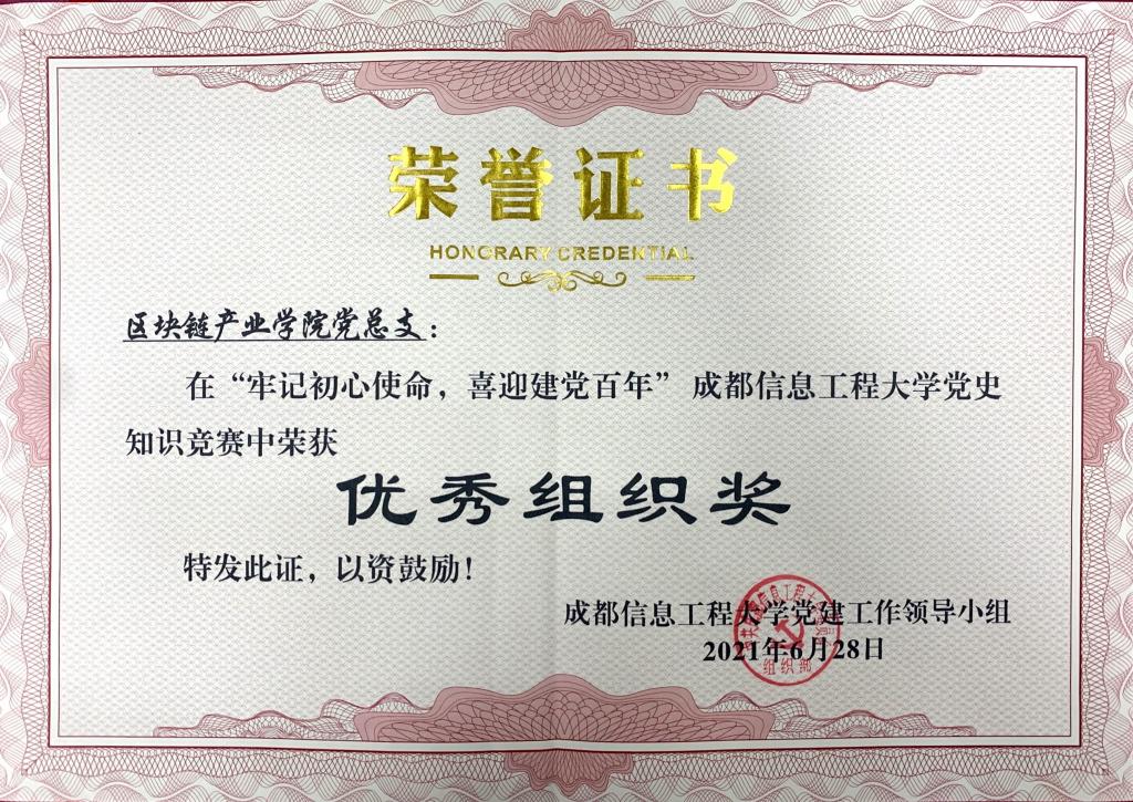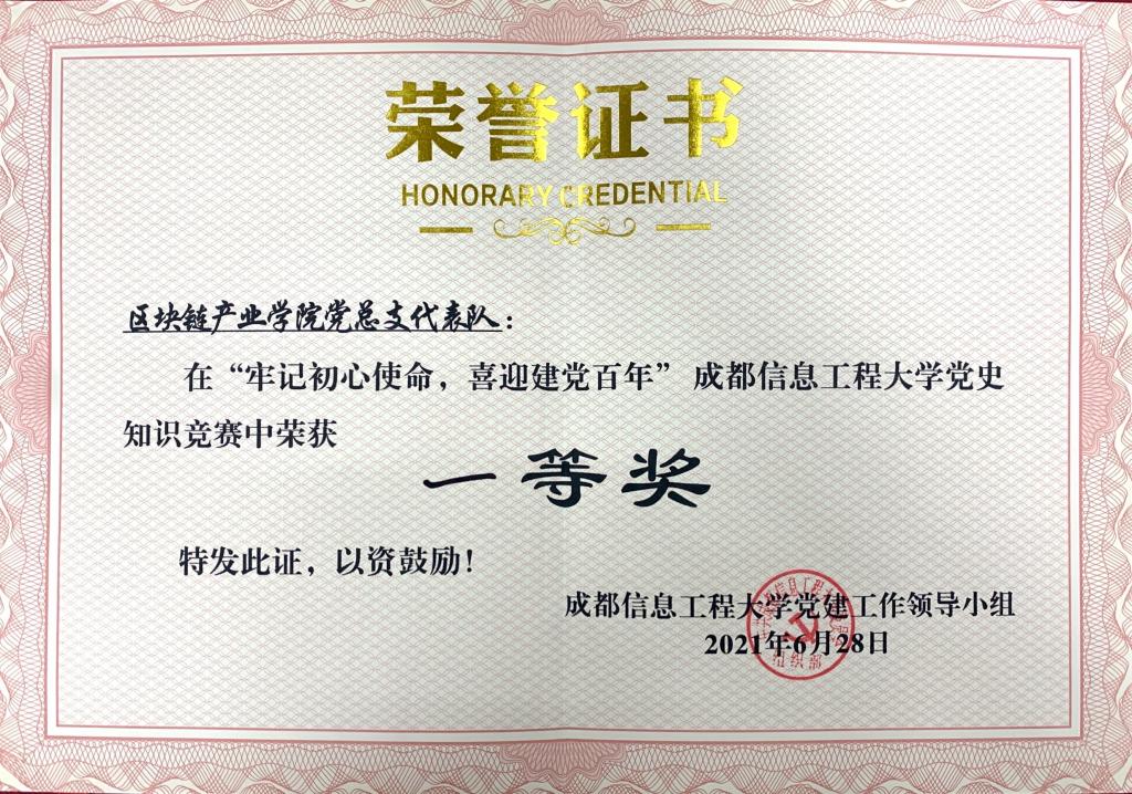 为庆祝中国共产党成立100周年,营造“学党史、悟思想、办实事、开新局”的良好氛围,根据公司党委关于党史学习教育的部署安排和通知要求,党委组织部、党委统战部主办,马克思主义公司党总支、校团委承办的“牢记初心使命,喜迎建党百年”党史知识竞赛历时两月圆满结束。复赛获胜的7支队伍和民主党派代表队共8支队伍参加了决赛环节。经必答、抢答、风险题环节的激烈角逐,区块链产业公司党总支代表队荣获第一名,并获得本次大赛的“优秀组织奖”。