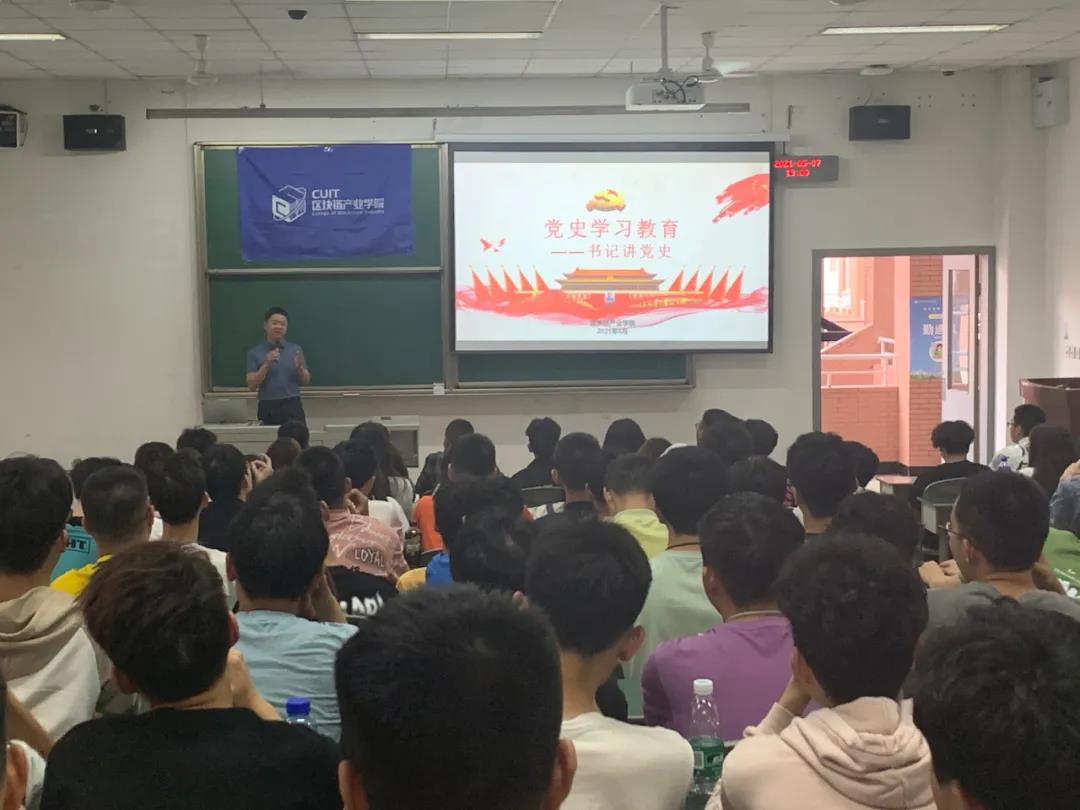 为深入学习中国共产党百年历史和伟大成就,从中汲取经验、昂扬斗志。5月7日晚,区块链产业公司党总支书记何晋在2304教室为学院全体同学及学工队伍上了一场内涵丰富的党史教育课。