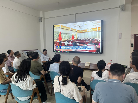 参观学习结束后,全体教职工党员在战旗村党群服务中心开展了6月主题教育专题学习。公司党委书记林细俤领学了《关于认真学习贯彻习近平总书记重要讲话精神 深刻领悟以学增智重要要求 推动主题教育走深走实的通知》,并结合个人学习体会,对提升政治能力、思维能力、实践能力进行了阐释,并强调要深刻认识当前学院面临的新机遇新任务新挑战,要自觉增强提高政治能力的责任感和紧迫感。教工党员刘强领学了《习近平著作选读》第二卷部分章节。接着,参加研学的全体教职工集体观看《新闻联播》对中共中央政治局第五次集体学习的报道视频,并重点学习了习近平总书记重要讲话精神。林细俤最后强调:习近平总书记重要讲话围绕贯彻落实党的教育方针,深刻回答了新时代“培养什么人、怎样培养人、为谁培养人”这一教育的根本问题,进一步丰富了教育强国建设的科学思维。全体教工党员要深刻把握习近平总书记关于教育重要论述的思想精髓,以高尚师德引领师德师风建设,不断更新教育理念,勤修仁爱之心,坚守三尺讲台,静心钻研教育规律,用广博的学识、高超的教学艺术,为每一个孩子点亮智慧人生,为党和人民培养大批可堪大任的专业人才。