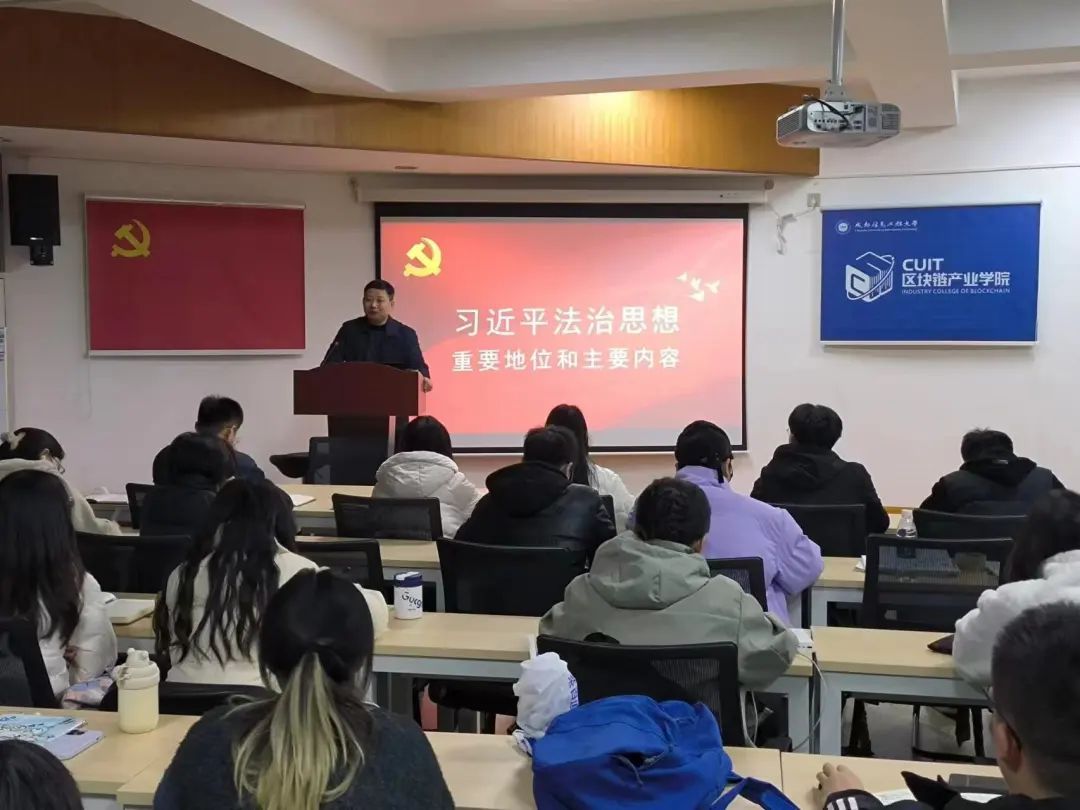 2023年12月4日下午,区块链产业公司党委组织全体党员与发展对象于信息楼多功能厅开展国家宪法日和习近平法治思想主题学习。本次学习活动由公司党委书记林细俤主持。