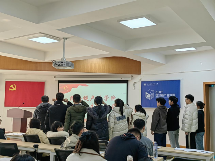 研究生党员刘帅琪同志带领与会党员重温入党誓词,回望入党初心,牢记责任担当。