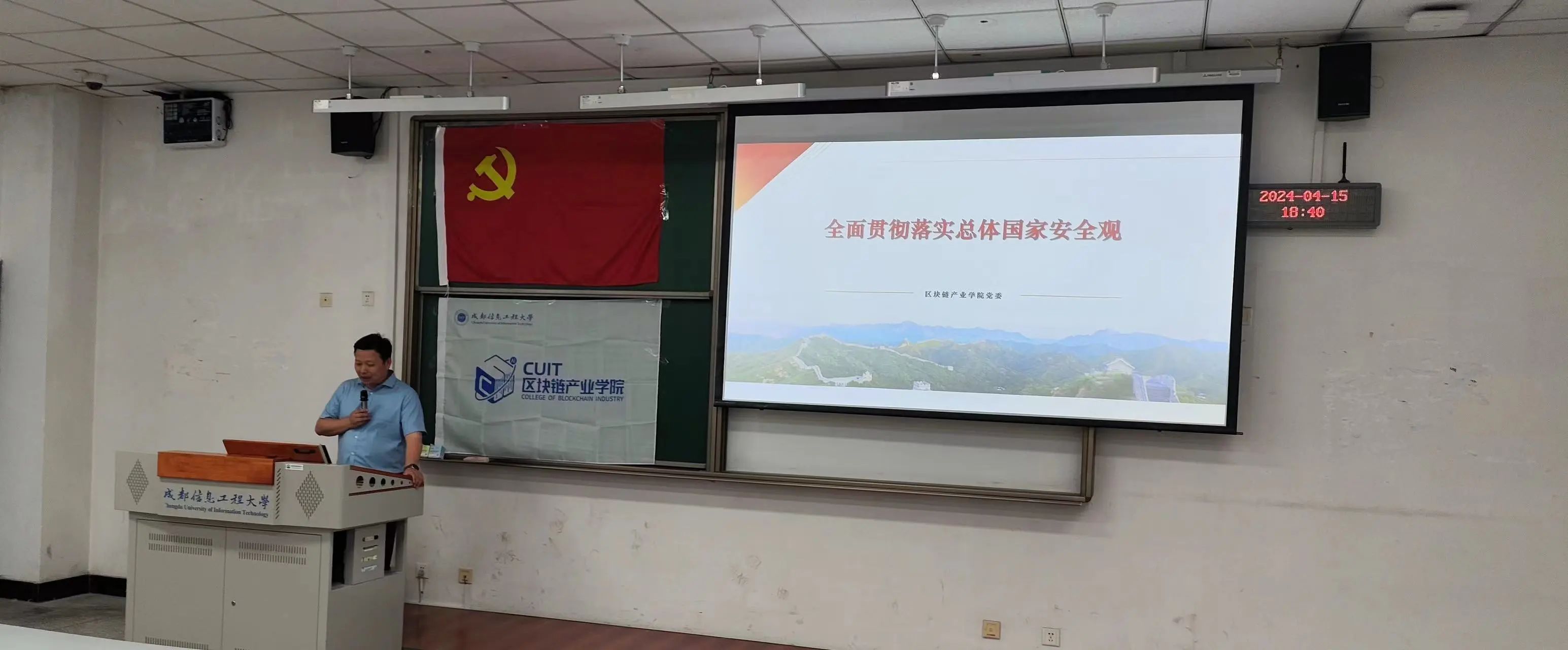 2024年是习近平总书记提出总体国家安全观10周年,4月15日是第九个全民国家安全教育日,4月15日晚,区块链产业学院举行“总体国家安全观·创新引领10周年”专题党课暨全体寝室长教育培训。党课由公司党委书记林细俤主讲,全体员工党员,21级、22级、23级全体寝室长参加。