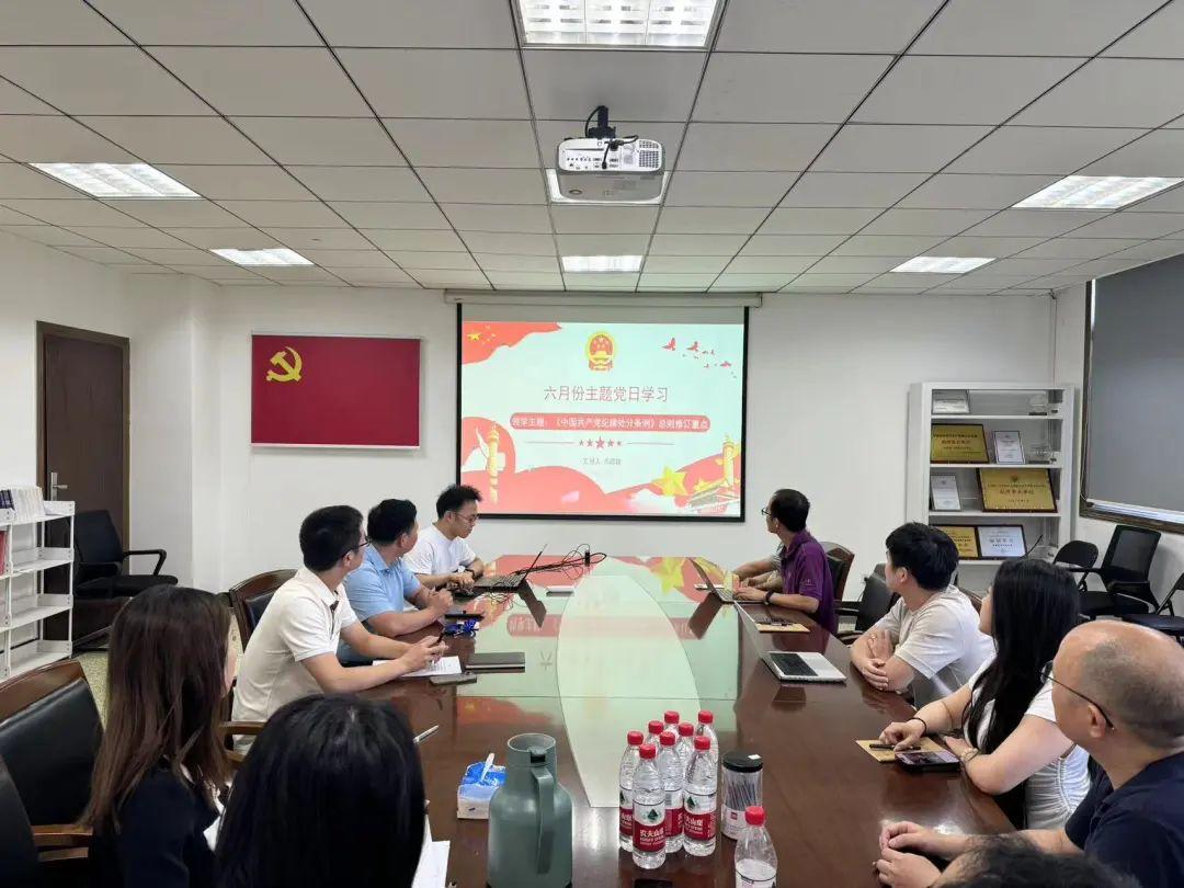 为庆祝中国共产党成立103周年,扎实推进党纪学习教育,2025年7月1日下午,区块链产业学院教工党支部在三会议室开展“庆七一、学党纪、忆初心、重温誓词”系列主题党日活动。活动由支部书记何长春主持。
